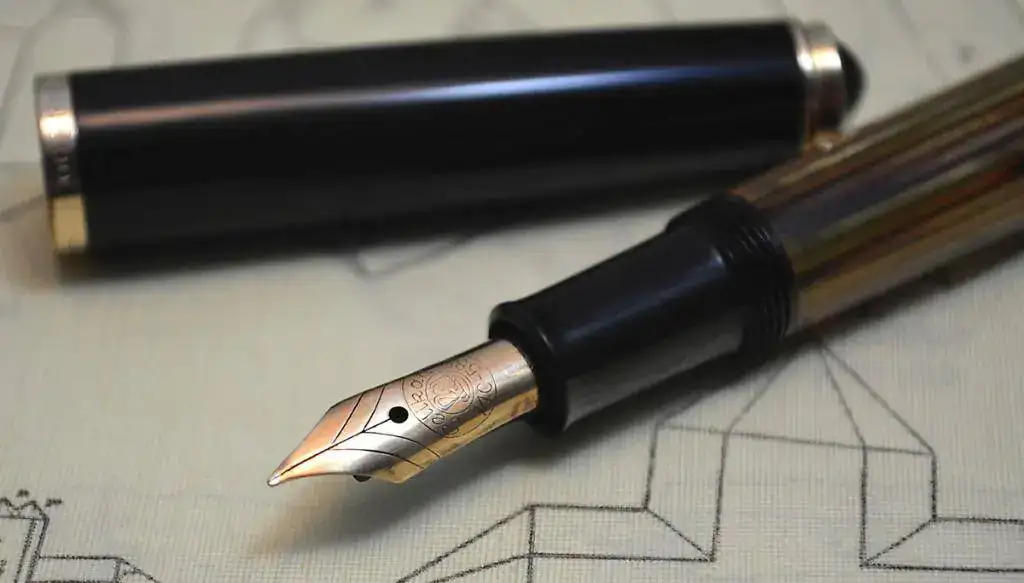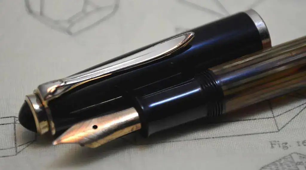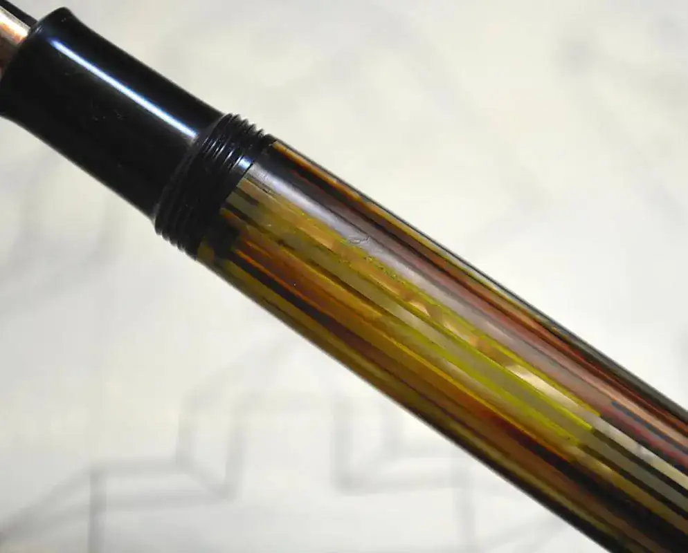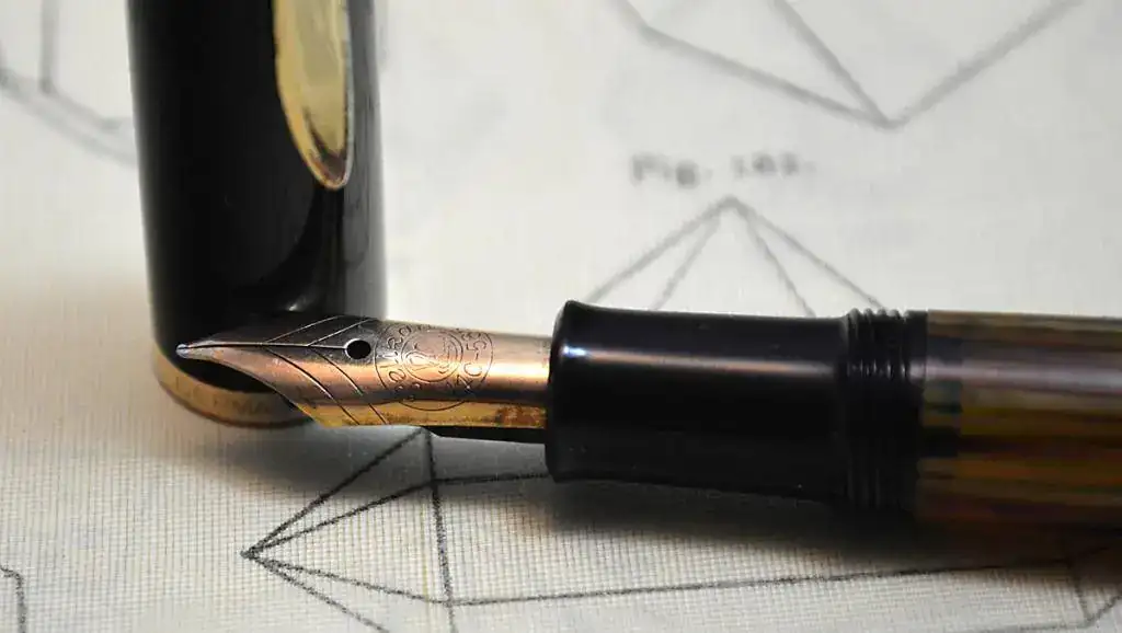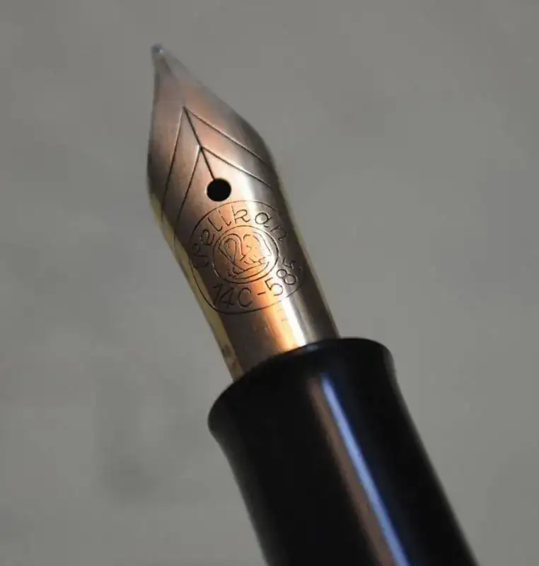 La pluma tiene un plumín de trazo Fino y muy rígido (HF) IR5, muy suave. El alimentador es de ebonita acanalada.