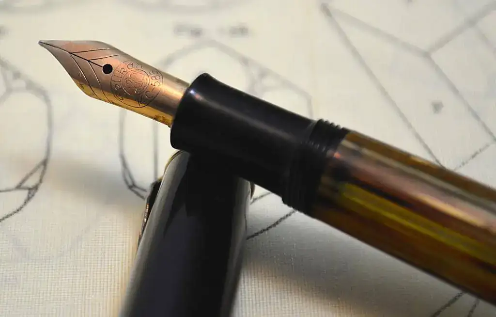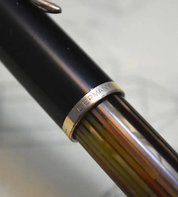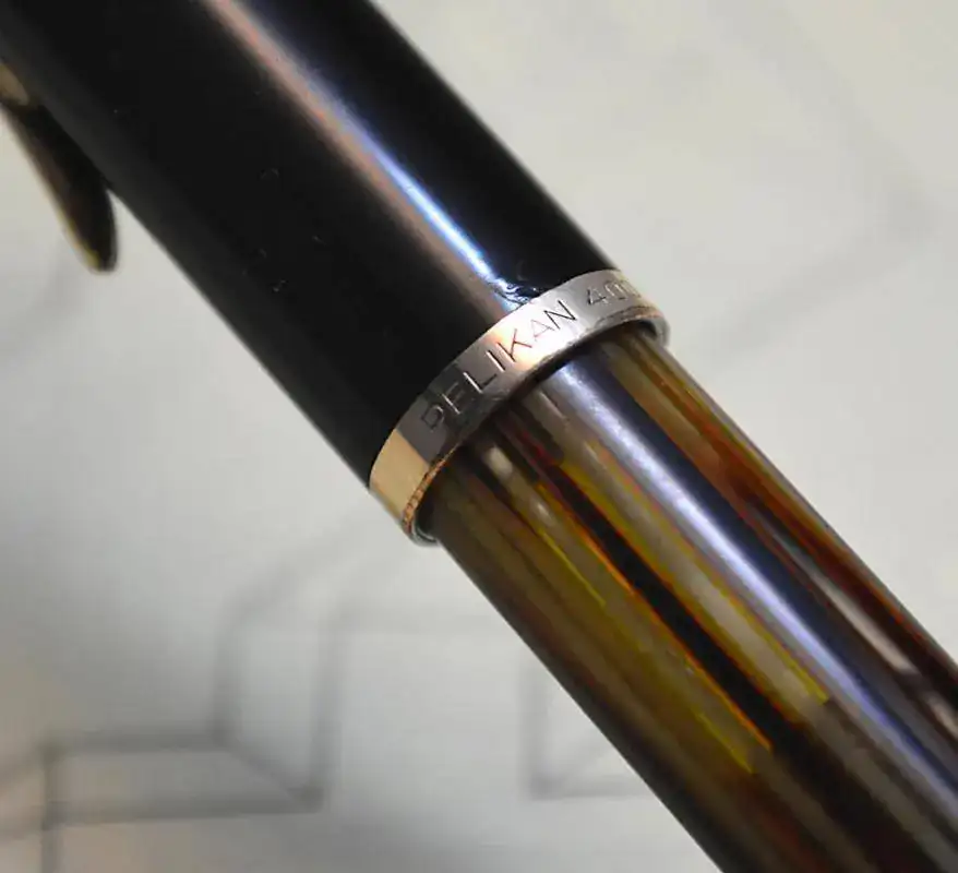 Con los debidos permisos, ofrezco para su venta esta estilográfica PELIKAN 400NN con cuerpo de celuloide de color tortuga y resina color marrón oscuro, y detalles chapados en oro.