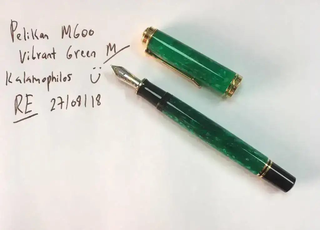 Pongo a la venta una de mis M600, que no uso. Es el modelo Vibrant Green, edición especial de 2014, en punto M. El plumín es de 14 k y la carga por pistón. Los cabados de anillos y clip son chapados en 24 k