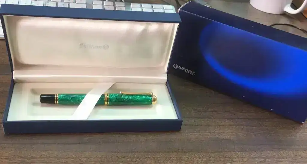 La pluma está como nueva, pues casi no se ha usado. No tengo la caja ni los papeles, pero la enviaré en el estuche y caja de cartón Pelikan que se ve en las fotos.