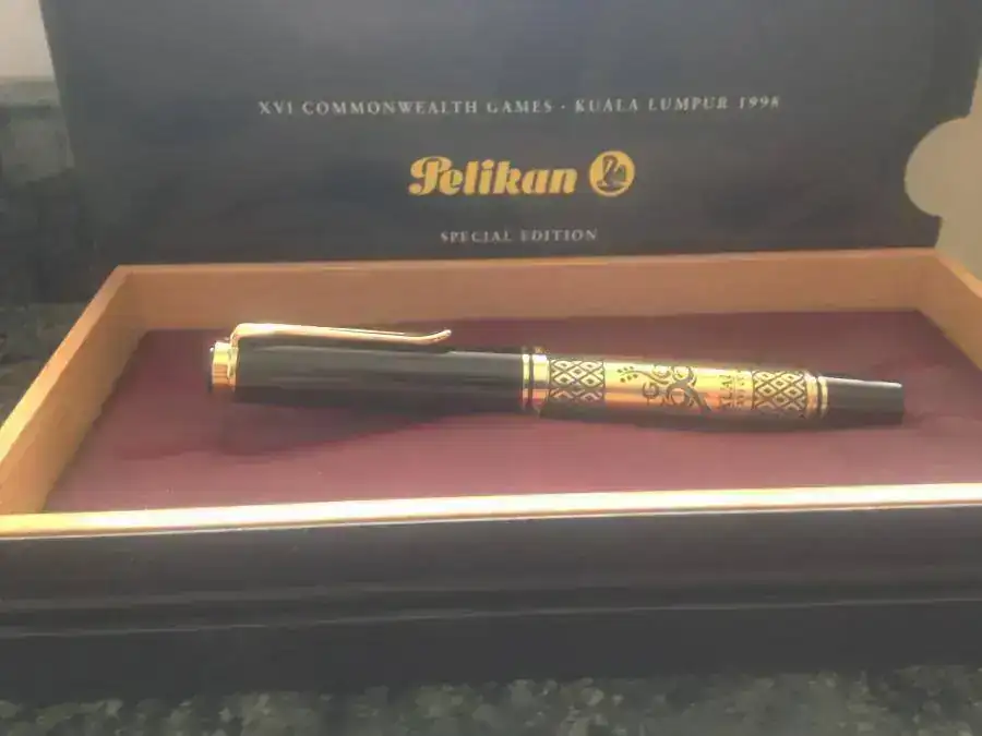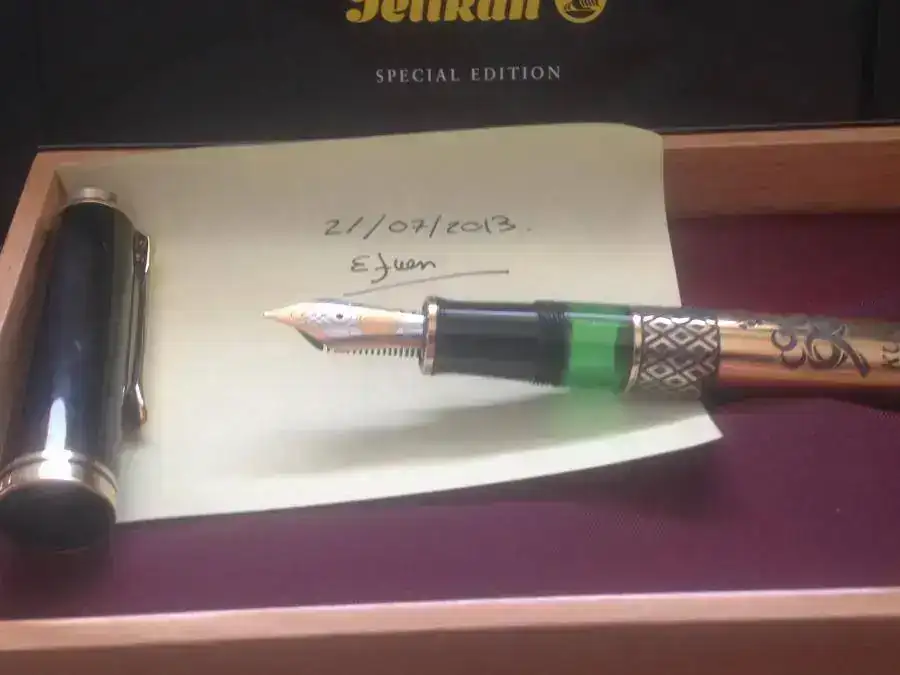 Pongo a la venta esta edición especial de Pelikan que se ha diseñado tomando como base una M800. Salio a la venta en 1998 con una tirada de 888 unidades. En el anillo mas ancho del capuchón se ven las inscripciones de "PELIKAN", "GERMANY" y "ag 925".