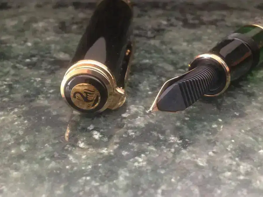 La pluma no tiene ninguna marca ni micro raya y solo la he entintado un par de veces. Lleva guardada mucho tiempo. Va con su caja y papeles aunque la caja esta un poco deteriorada por el tiempo.