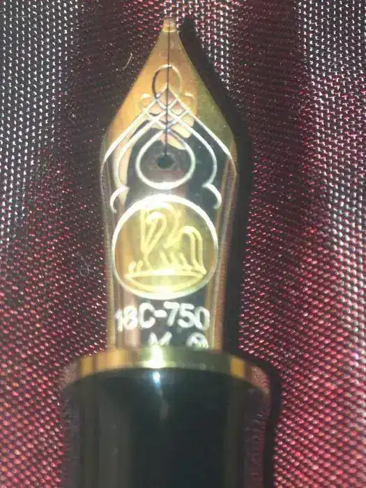 El plumín es de oro de 18K., bicolor cuenta con un dibujo lineal decorativo podemos ver el anagrama de la marca y “18C – 750”; el sistema de carga es por medio de émbolo accionado desde el culote. El punto es M.