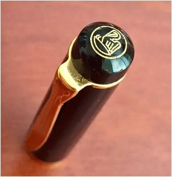 Esta pequeña maravilla esta fabricada en una preciosa resina negra, de pequeño tamaño (apenas 122 mm con la tapa puesta y unos 11mm de grosor) con un plumín Gold Plated con el nombre y logo de la marca bellamente esculpido y su punto de grosor, en este caso un M.