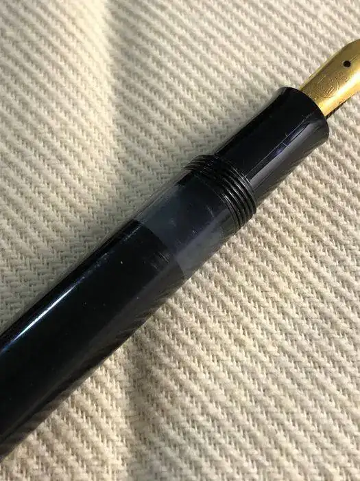 Se carga por pistón y como se puede apreciar tiene una ventana lisa sin estrías de un gris azulado para comprobar el nivel de tinta.