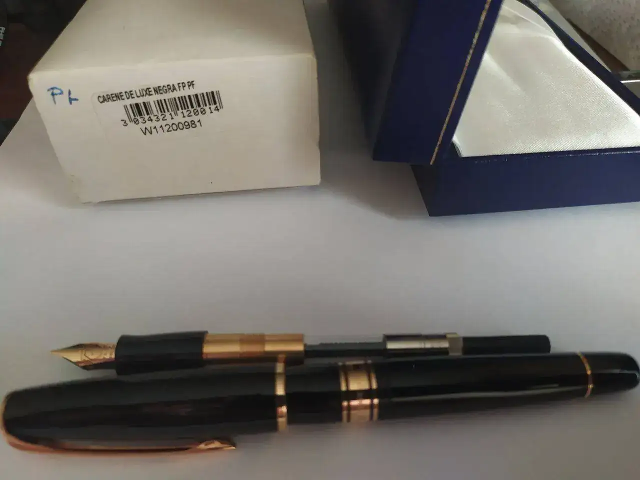 Buenas tardes a todos, en mi haber ya tenía varias Parker Vector con plumin mediano y fino así como una waterman, todas ellas de carga por cartucho/adaptador. Con motivo del fallecimiento de la Reina de Inglaterra, leí que una de las plumas que mas utilizaba era la Parker 51. Luego fuí conciente de que la que se comercializa hoy en día con el plumin plano, no es ni sombra de la original. En esa busqueda de conocimiento leí vuestros comentarios sobre la Pelikan M200 y como no tenía ninguna estilográfica con piston...resumiendo: hoy ha llegado una con plumin F. Tal y como la describiais, escritura suave, una auténtica delicia, prueba con tinta Pelikan Azul Turquesa frente a la Parker Vector con tinta mas fluida Royal Blue -fe de erratas escrito Blue Royal-.
