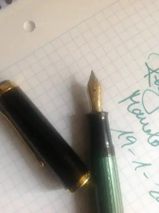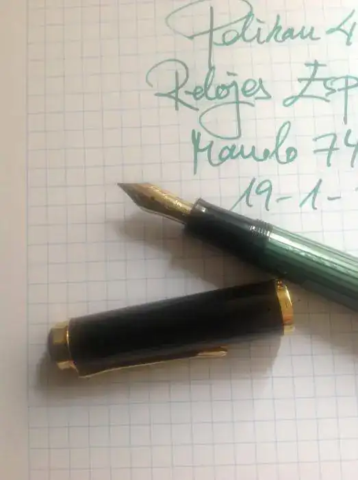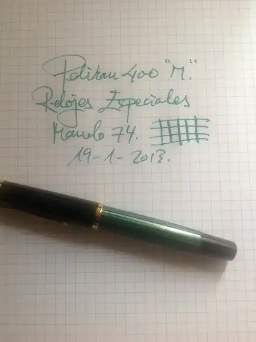 otra que sale a la venta, una Pelikan M400 verde. La inscripción del capuchón dice "W.Germany" así que será de antes de los 80. El plumín es un M de oro semi-flex, muy suave y agradable. La pluma está usada pero en buen estado. Ya sabeis, una 400, una de mis preferidas y de la que tengo varias similares, por eso ésta sale.