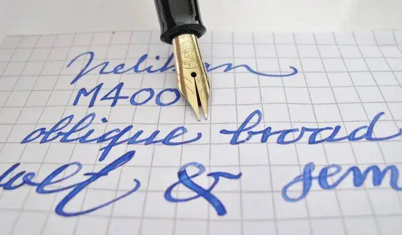 • PUNTO/PLUMÍN: Plumín de oro 14 Kilates. OB (oblicuo grueso). El plumín es elástico, con cierta variación de trazo.