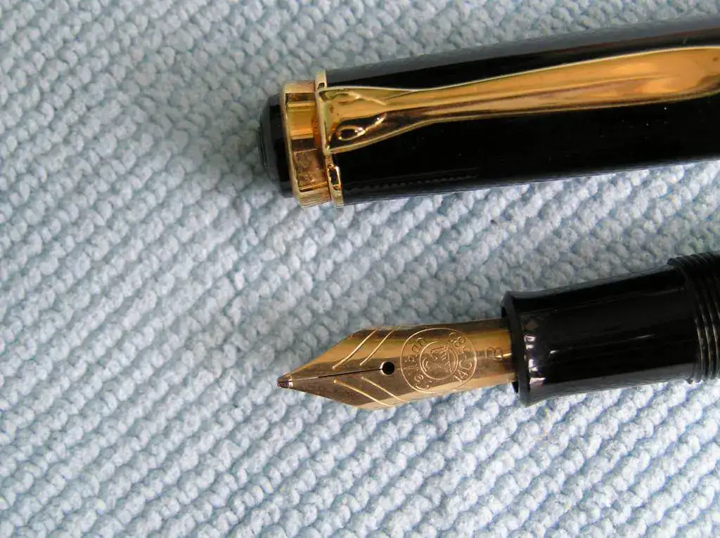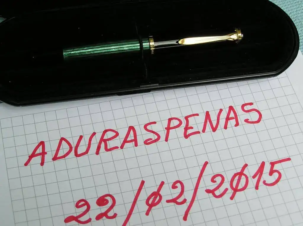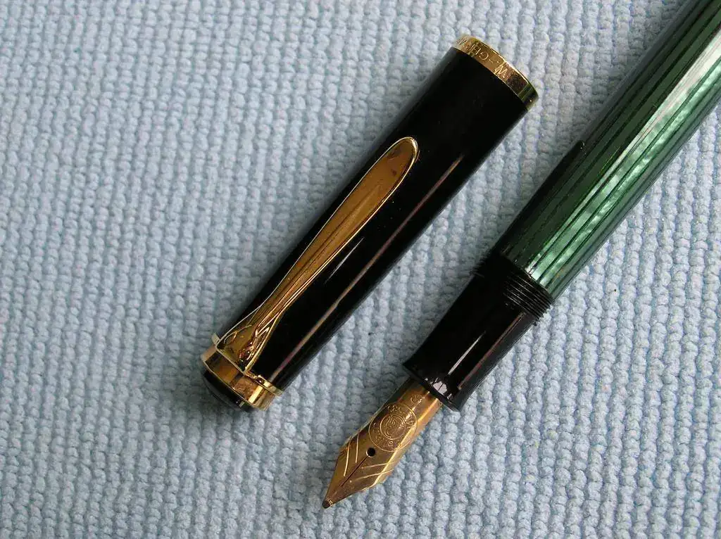 Vendo Pluma Pelikan M 400 de celuloide verde estriado combinado con negro. Mide unos 12,5 cm. con el capuchón enroscado y lleva un punto B (Broad). El sistema de carga es mediante pistón