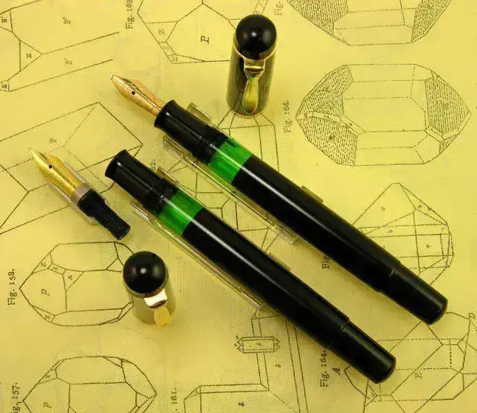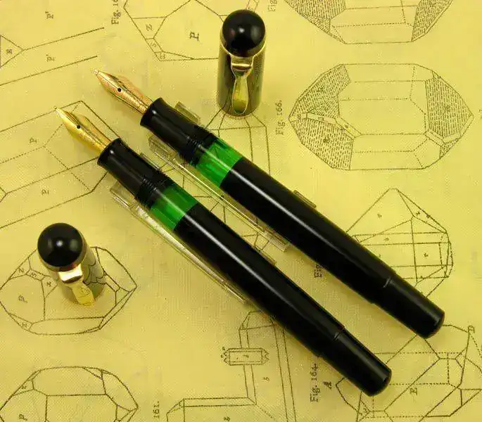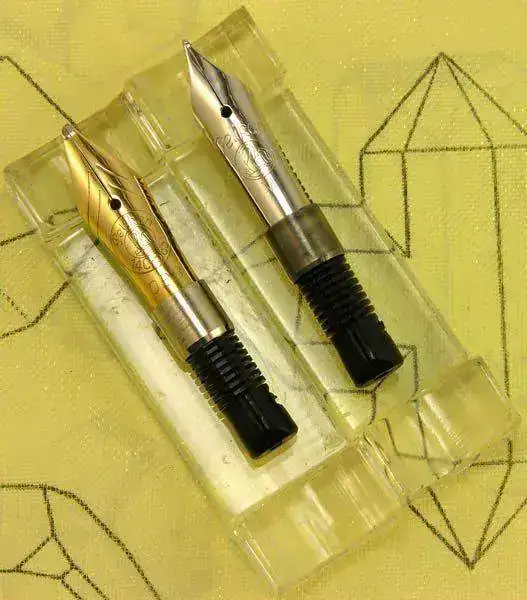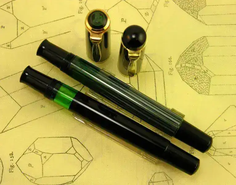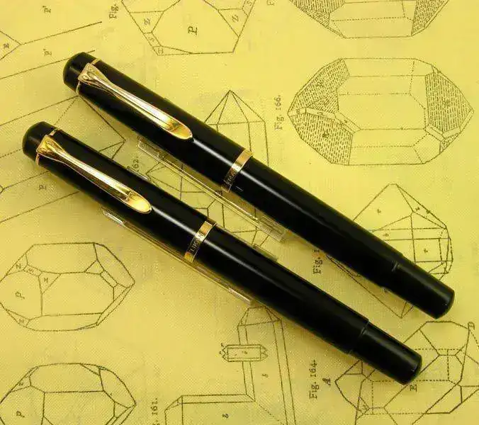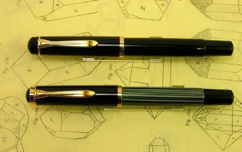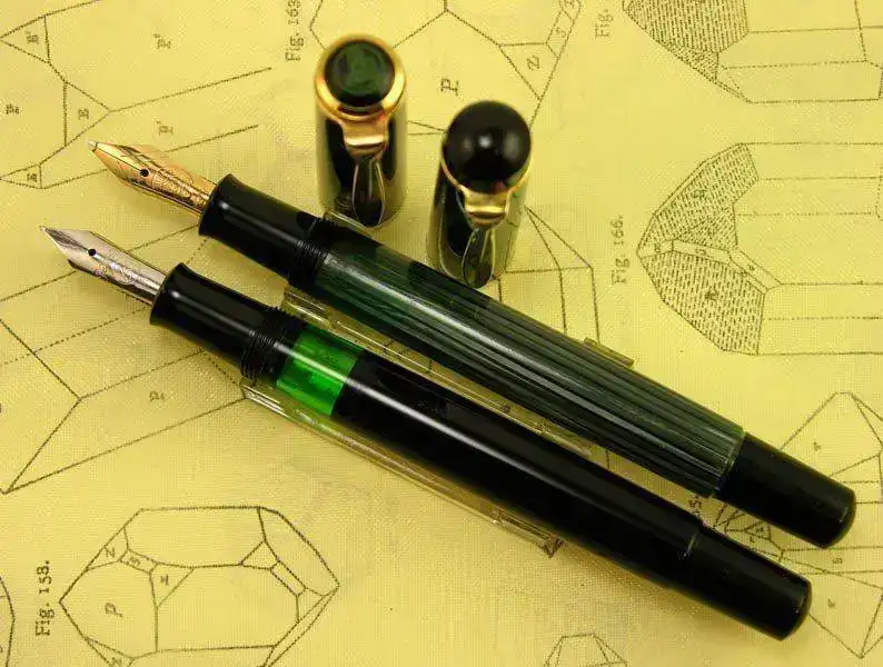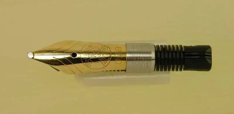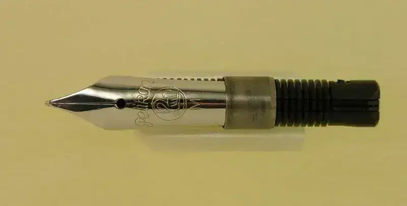 Nota: El plumín de acero que monta la M418 friction debiera ser dorado en el modelo original, al igual que en la M481 normal, pero este ejemplar ha perdido su dorado original aunque muestra algunos restos dispersos del mismo. La M400 friction monta su plumín monótono de oro de 14 kt como corresponde a esa etapa denominada Old Style.