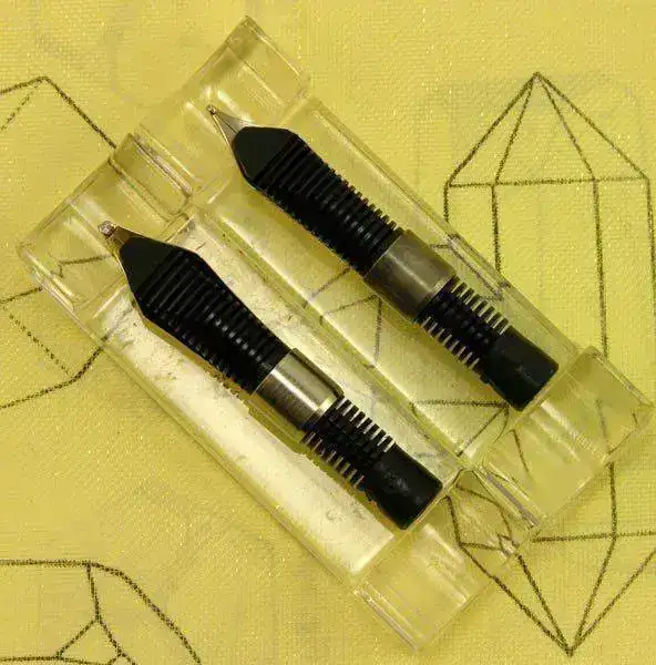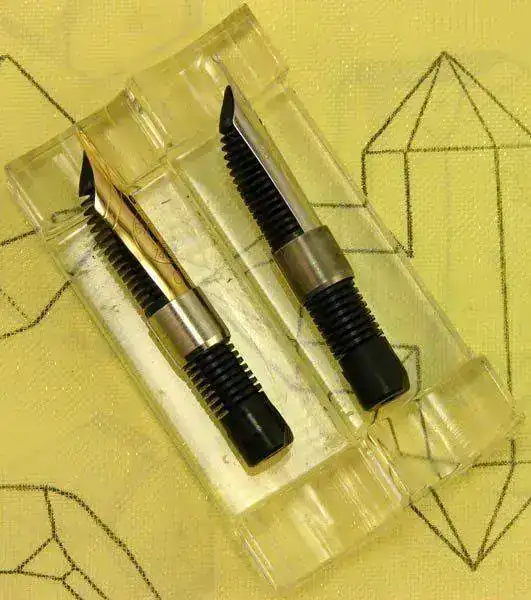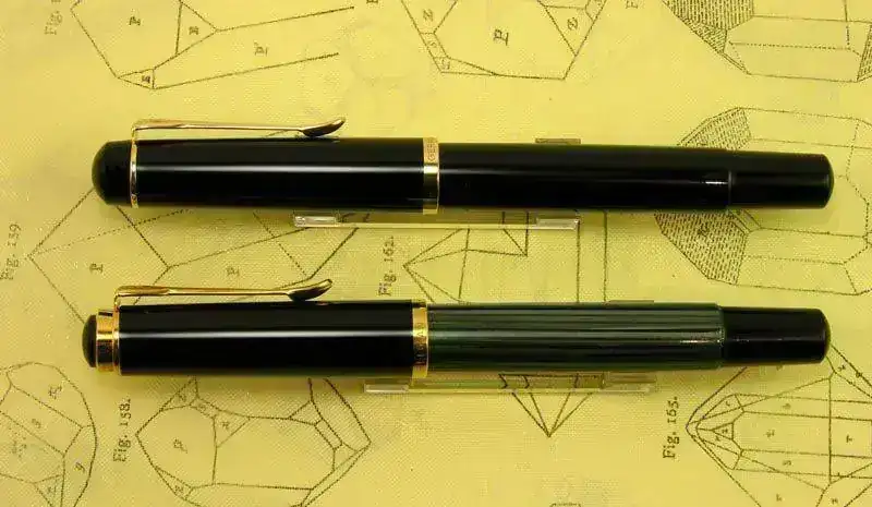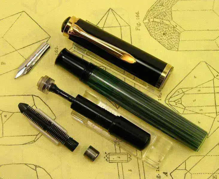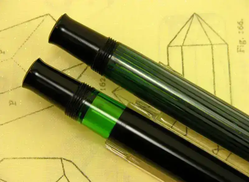 Las plumas de las gamas más representativas de marca Pelikan se caracterizan por su grupo de escritura (plumín, alimentador y casquillo) que se monta mediante una rosca tallada sobre el propio casquillo. Esta característica hace que sea muy fácil cambiar plumines o realizar reparaciones, aunque también facilita las confusiones y las bodas entre modelos de dimensiones similares.