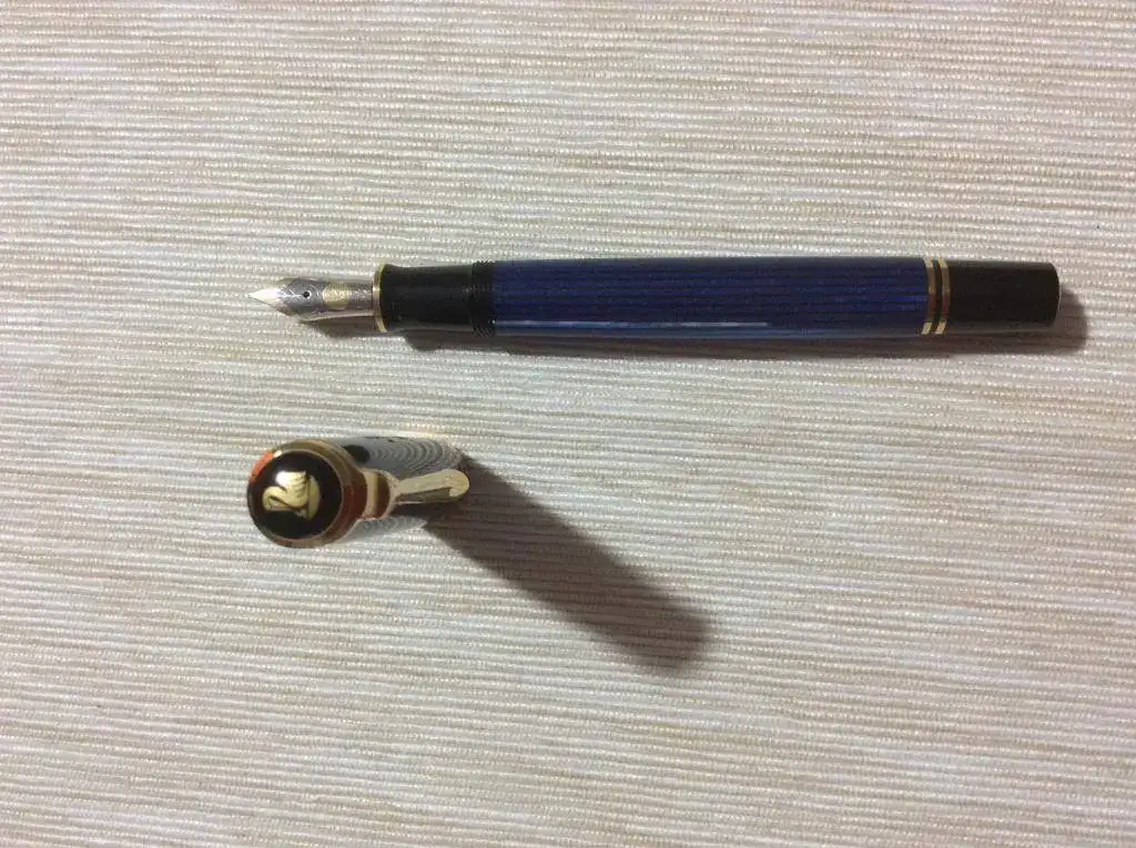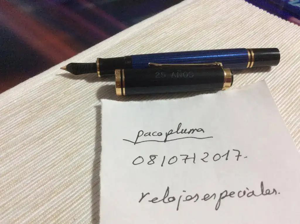 Esta pluma cayó en mis manos por casualidad, la vi en una tienda de segunda mano y la compré sin dudarlo. Después, sin haberla usado, sé, por otras Pelikan que tengo, que pese a lo bonita que es, ese punto M será demasiado grueso para mí, y seguramente se me quede un poco pequeña, acostumbrado como estoy a plumas más grandes.
