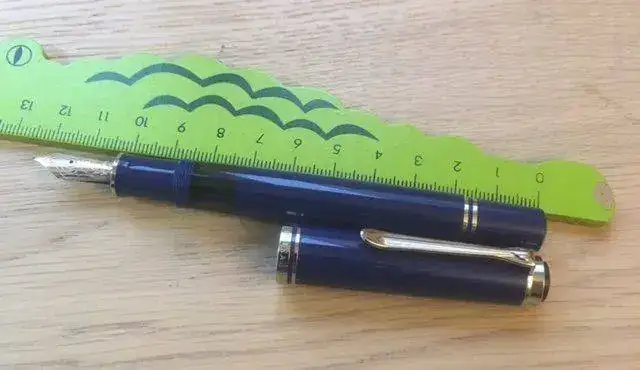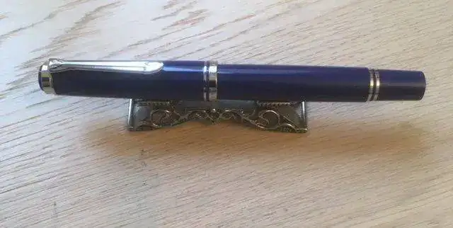 Es una Pelikan M605, azul oscuro con detalles cromados. Un acabado difícil de encontrar ya.