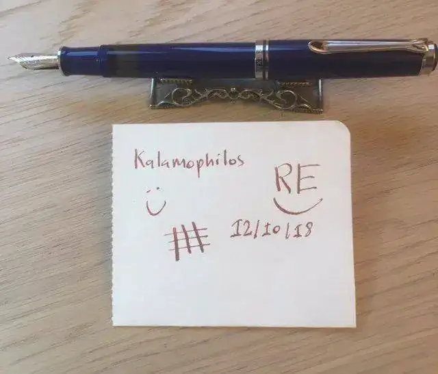 El papelito está escrito con la pluma a modo palillero, con tinta MB Leonardo.