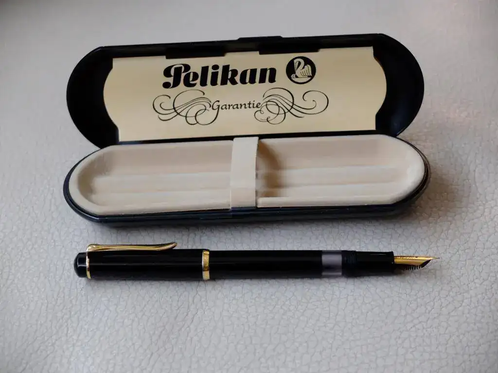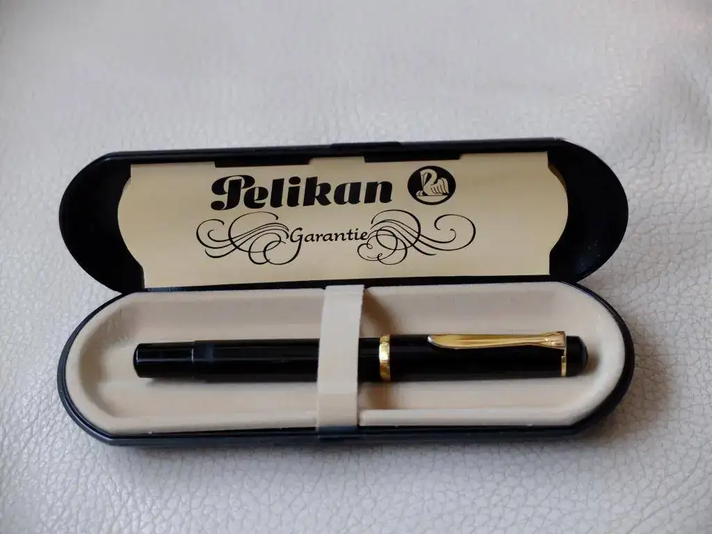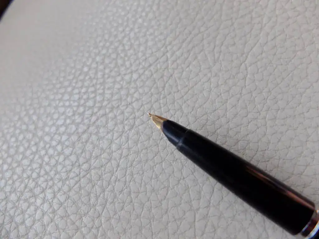 La estilográfica tiene un defecto en el adorno dorado que rodea el plumín. He intentado que se vea en la foto.