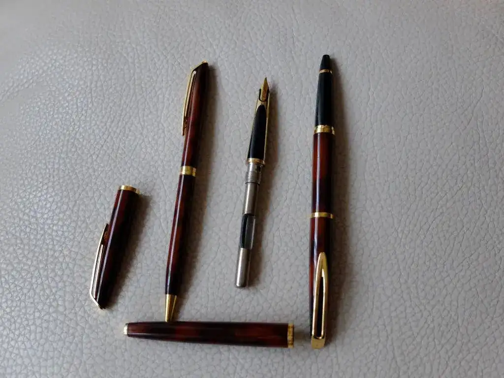 Estilográfica, rotulador y bolígrafo, creo que de laca.