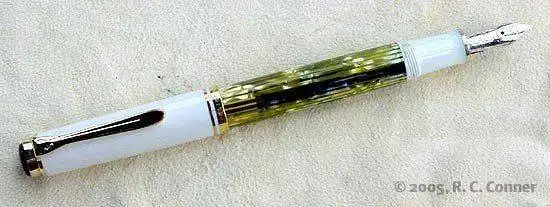 Pelikan 400 blanca/golden. No recuerdo el punto, pero creo que M 14kt. Me acabo de acordar de ésta al verla en google. Creo que eran unos 140€ o así.
