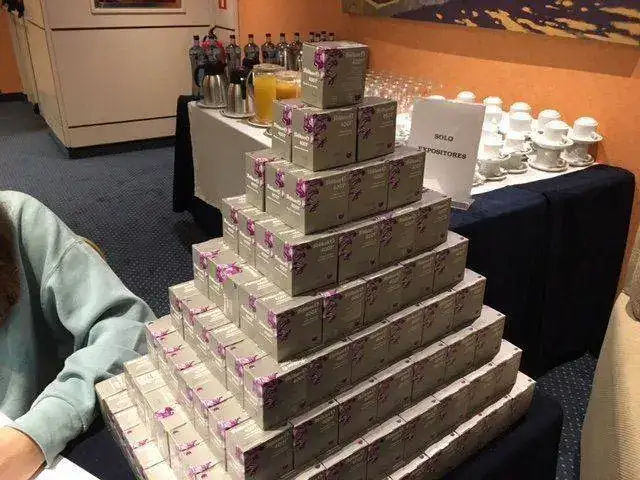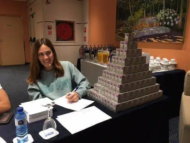 La mesa “de recepción” está ubicada estratégicamente para recoger un poco de información sobre la procedencia de los asistentes y sus impresiones, información que se ve correspondida con un tintero Pelikan de color violeta (dispuestos en forma de pirámide). Mientras tanto, nombres emblemáticos de este mundillo intercambiando piezas, un aliciente más para asistir como expositor a estos eventos.