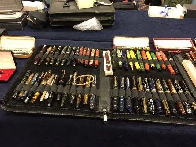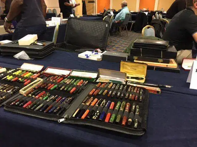 Los expositores negociando precios (mientras espero para hacer una pregunta sobre el precio de una Parker 51, la persona que tengo delante compra una Omas 361 Magnum y una Montblanc 149 después de estar negociando un buen rato) y los compañeros y amigos hablando de sus adquisiciones y ofertas que se pueden encontrar en las diferentes mesas. Después de casi cuatro horas en la sala decido sentarme un momento, conversando con los compañeros que ahora custodian la entrada. Con las compras ya hechas es momento de desfilar a casa para la comida. Una lástima no haberme podido quedar a comer con los compañeros, pero las obligaciones familiares me han condicionado un poco este año.