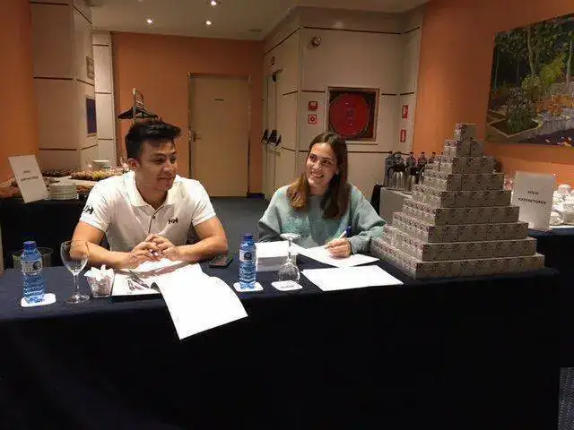 Las 9 menos diez de la mañana y ya hay algunas parejas esperando en la puerta para entrar. Las dos personas encargadas de la mesa de la entrada retienen sus ansias de querer ser los primeros en acceder a la sala, conversando de manera amena con ellas.