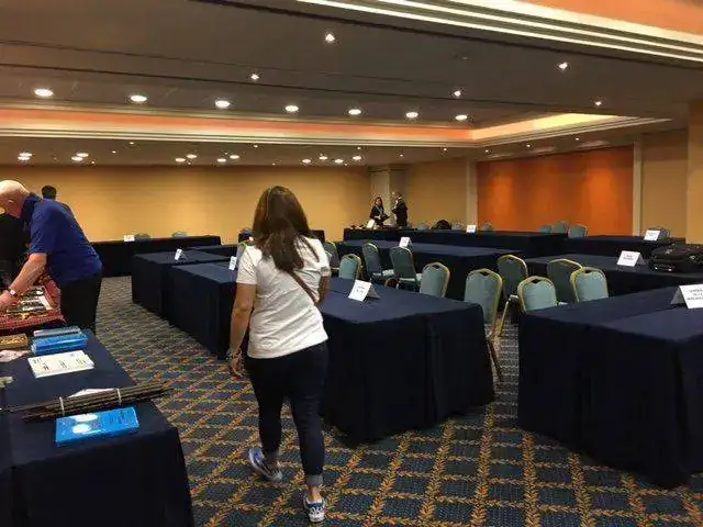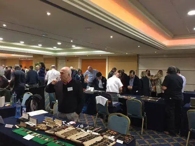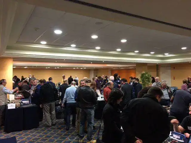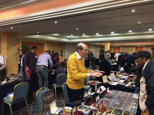 Como parte de organización, el pasado sábado tuve que llegar temprano a la sede del evento, disfrutando de los momentos iniciales de la feria. Los expositores van llegando de manera silenciosa, localizan su mesa y empieza el ritual de abrir maletas y empezar a disponer las piezas perfectamente repartidas por la mesa. Los organizadores se encargan de asistir a los expositores, proporcionándoles las identificaciones y ajustando las luces y la ventilación. Son cosas que no se aprecian cuando vas de comprador, pero desde luego implican un cierto esfuerzo y dedicación que quedan ocultados.