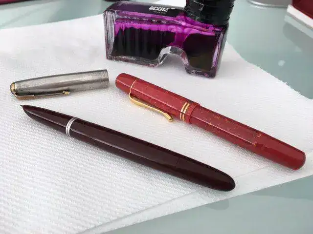 Segunda adquisición del día, una Parker 51 vacumatic cedar blue, que necesitaba de cambio de saco: