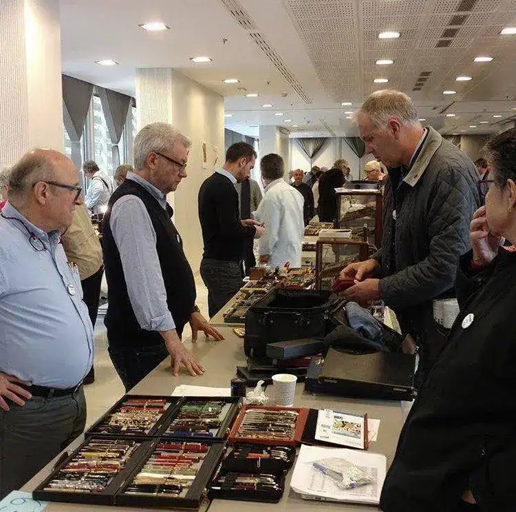 Bueno, pues ya he llegado y ya he salido... Un buen salón, plumas y plumas y más plumas y gente y gente y más gente. Cosas muy bonitas y aparentemente en buen estado, y una señora muy inteligente que había etiquetado las plumas con el precio. Es el puesto en el que más he parado y a punto he estado de llevarme una de 70 euros que no sabía ni lo que era...