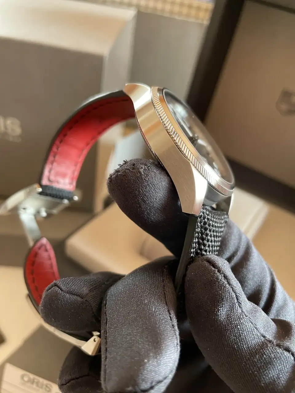 Le probé varias opciones y la verdad, considerando el detalle del segundero en rojo y que el rotor también está pintada de este color, creo que quedaba bien y animado por el vendedor y mi pareja, a la cuál también le gustaba este color el que más, acabé decidiéndome por él.