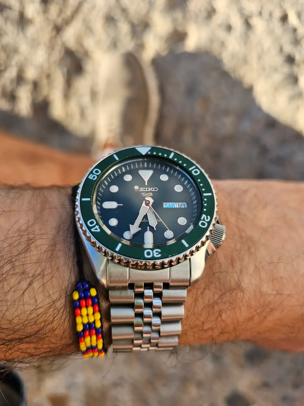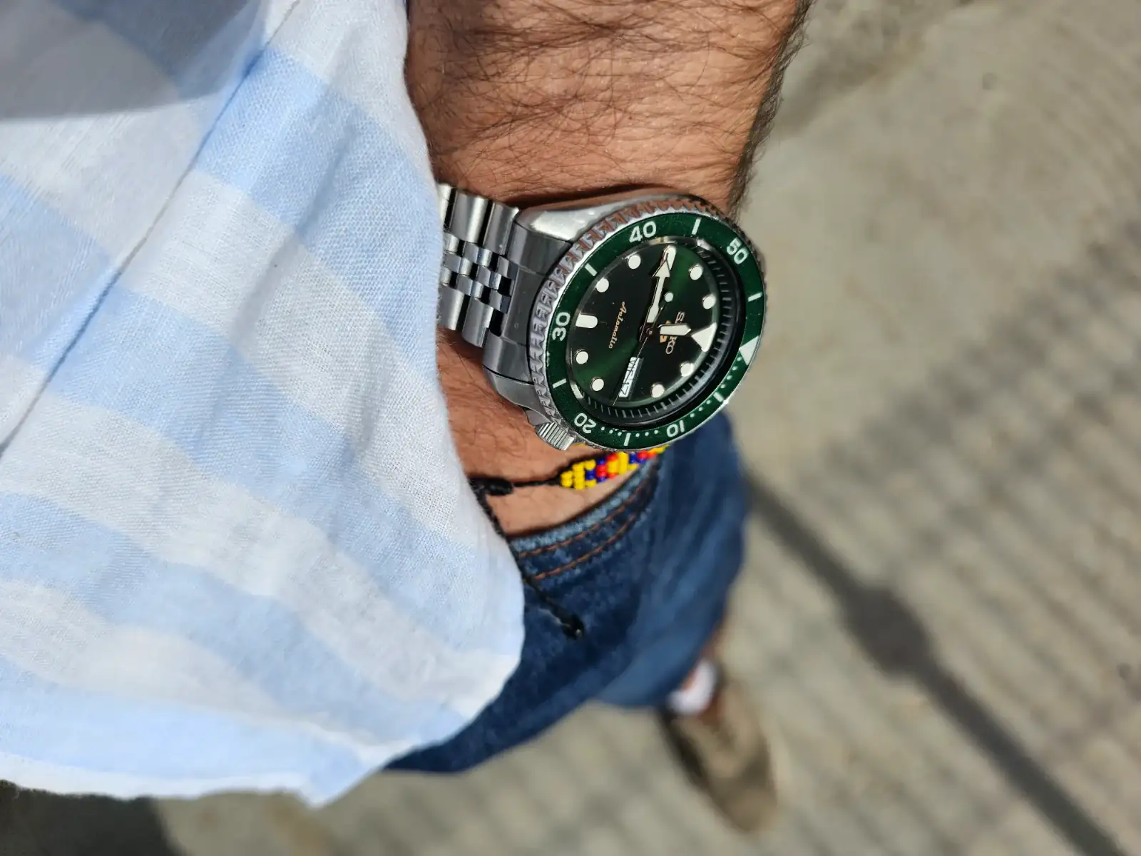 Jamás me han llamado la atención los relojes con esferas verdes y menos con detalles en oro rosa. Saliendo de una relojería donde me revisaron un G-Shock, me quedo mirando a este seiko y tuve un flechazo con su esfera, me encantó mucho más que en fotos donde nunca me llamó la atención como para comprarlo.