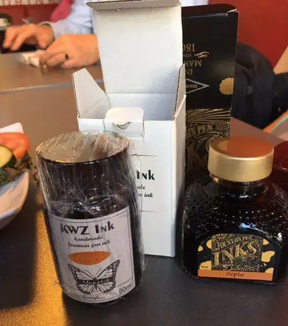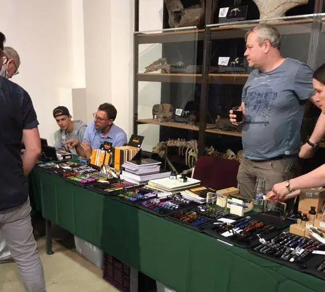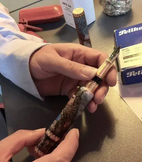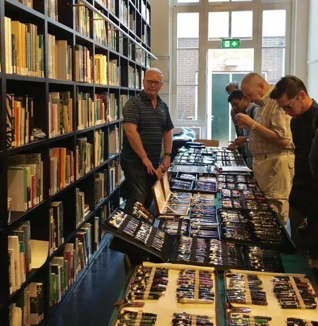 Aquí traigo noticias frescas del pen show de Tilburg: Como he comentado, he ido en tren, que ha sido muy buena idea. Hice el viaje con mi amigo Filippo, que nos conocimos en el Pelikan hub, y así fuimos comentados cosas y como él ya había ido un par de años, pues así no me pierdo, que se me da muy bien. Me ha comentado con pena la no asistencia de Paco Cruz este año. Lo peor ha sido el precio de la entrada: 11 euros!!!!!!! Sin regalito ni nada. Ays!!! El pen show es el museo de naturaleza para chiquillos, y los expositores estaban repartidos en dos salas. No he podido hacer fotos chulas de las mesas con todas las plumas porque por la mañana temprano había mucha gente, y luego ya casi a última hora que se podía ver bien las mesas, pues ya estábamos de charla y se me fue el santo al cielo. Además hicimos una escapada a la tienda de La Couronne, que está a cinco minutos andando. Muchas plumas que ver, pero la tienda es muy estrecha, y con poca gente ya se revuelve uno bien. Pero me lo pasé muy bien, que es lo que cuenta.