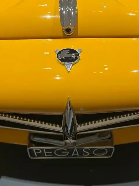 Z, como ya he dicho, es el acrónimo del Centro de Estudios Técnicos de Automoción, y se asignaron números por tipología: Z-2XX y Z-4XX para camiones, Z-7XX para tractores (que nunca llegaron a producirse)... y Z-1XX para automóviles, lo que da una idea de lo claro que Ricart lo tenía. También he comentado el mal rollito que se traía con Enzo Ferrari cuando estuvieron juntos en Alfa Romeo: parece que la elección del caballo volador por parte del propio Ricart como emblema y marca de los coches de ENASA no fue casual, y se le atribuye la frase ¿Quién puede querer un cavallino rampante pudiendo tener uno que vuela?.