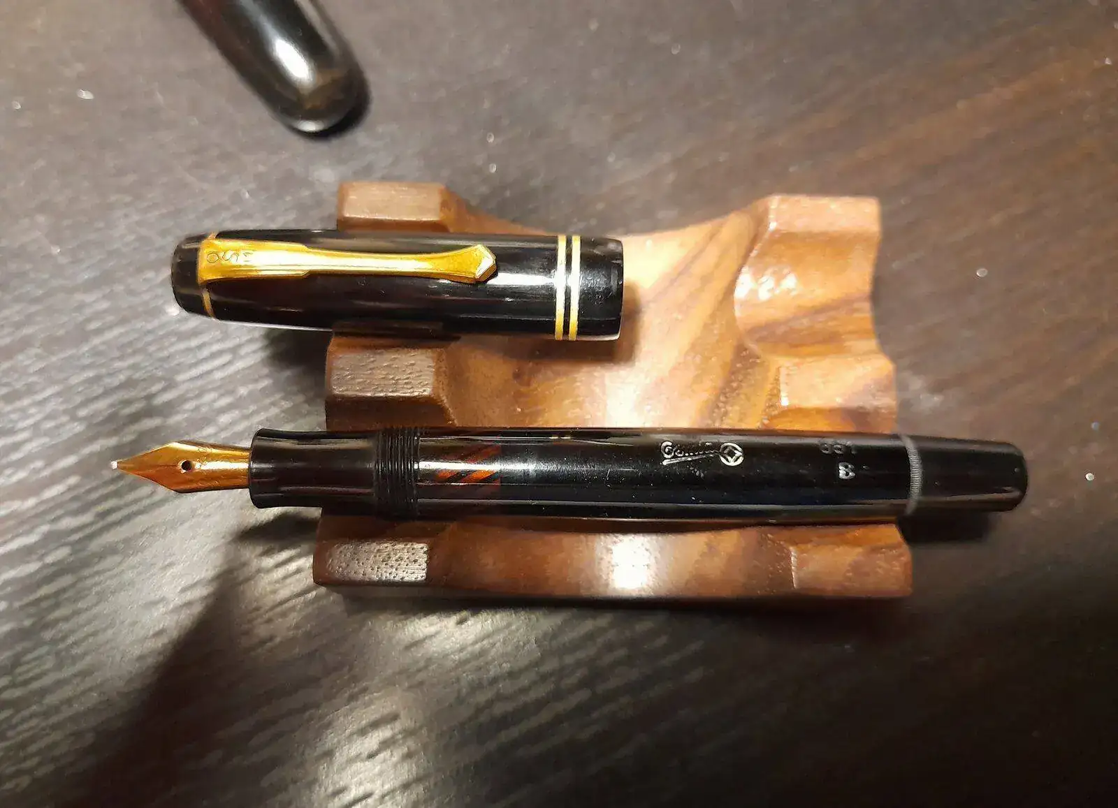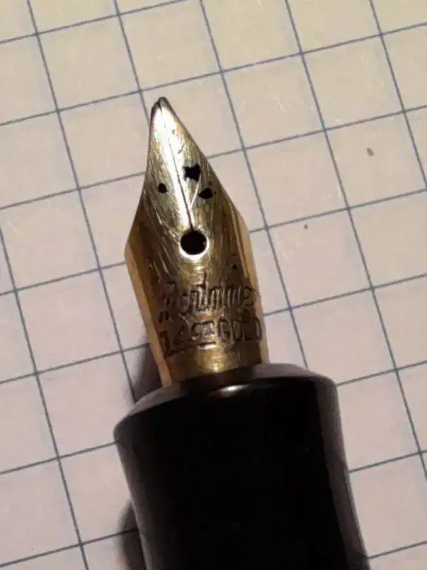 Y la otra vino conmigo la última vez que pasé por uno de los rastrillos de Madrid. Una Mentmore que no sólo es pequeña, sino que lleva un plumín diminuto y ¡oblicuo!