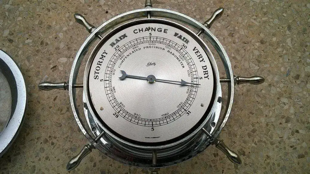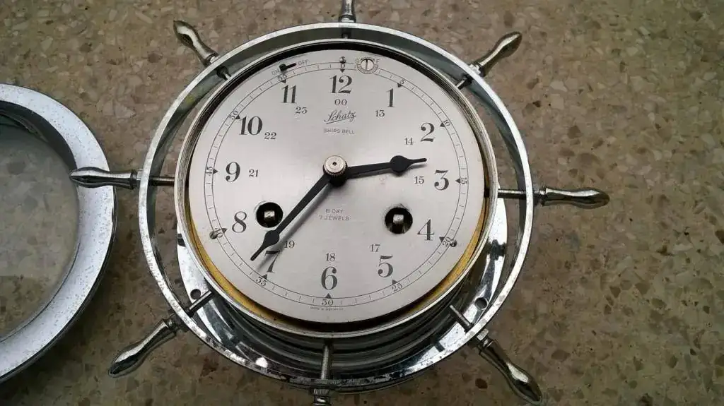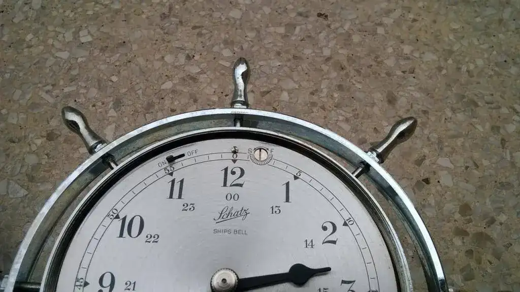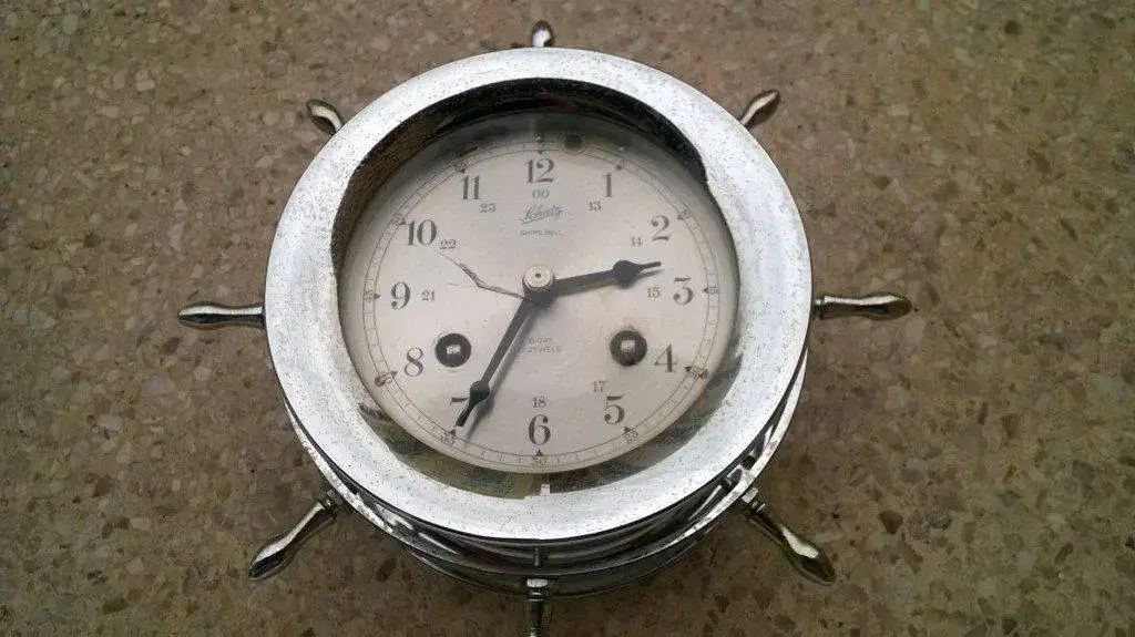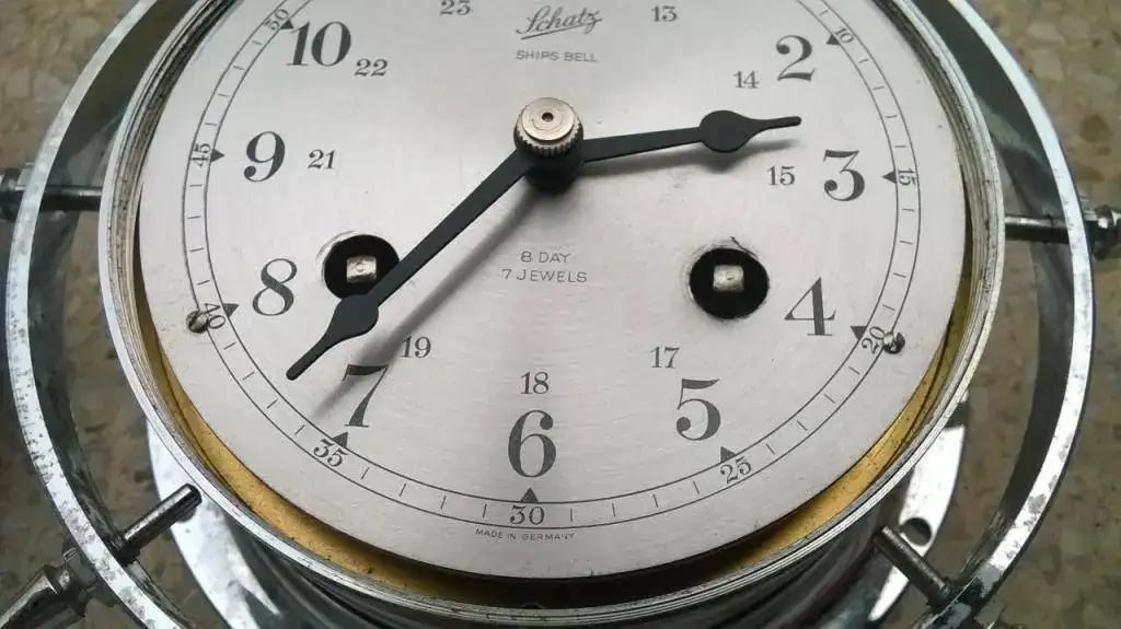 Hola a todos, os presento un pequeño hallazgo que era de mi padre (+), y que después de limpiarlo un poco por fuera, echó a andar nada más darle cuerda. Se trata de un Schatz Ships Bell 8 days. No funcionaba la sonería, así que después de abrirlo, descargué el barrilete, que estaba cargado a tope y debió quedarse atascado, y empezó a funcionar perfectamente. Da dos toques a la media y cuatro a en punto. Viene con su pareja, un Barómetro, al que después de ajustar, he comprobado que va de cine. Lo volveré a abrir para mostraros fotos de la maquinaria del reloj, que está impoluta; lo haré en cuanto tenga algo de tiempo... Ahora las imágenes: