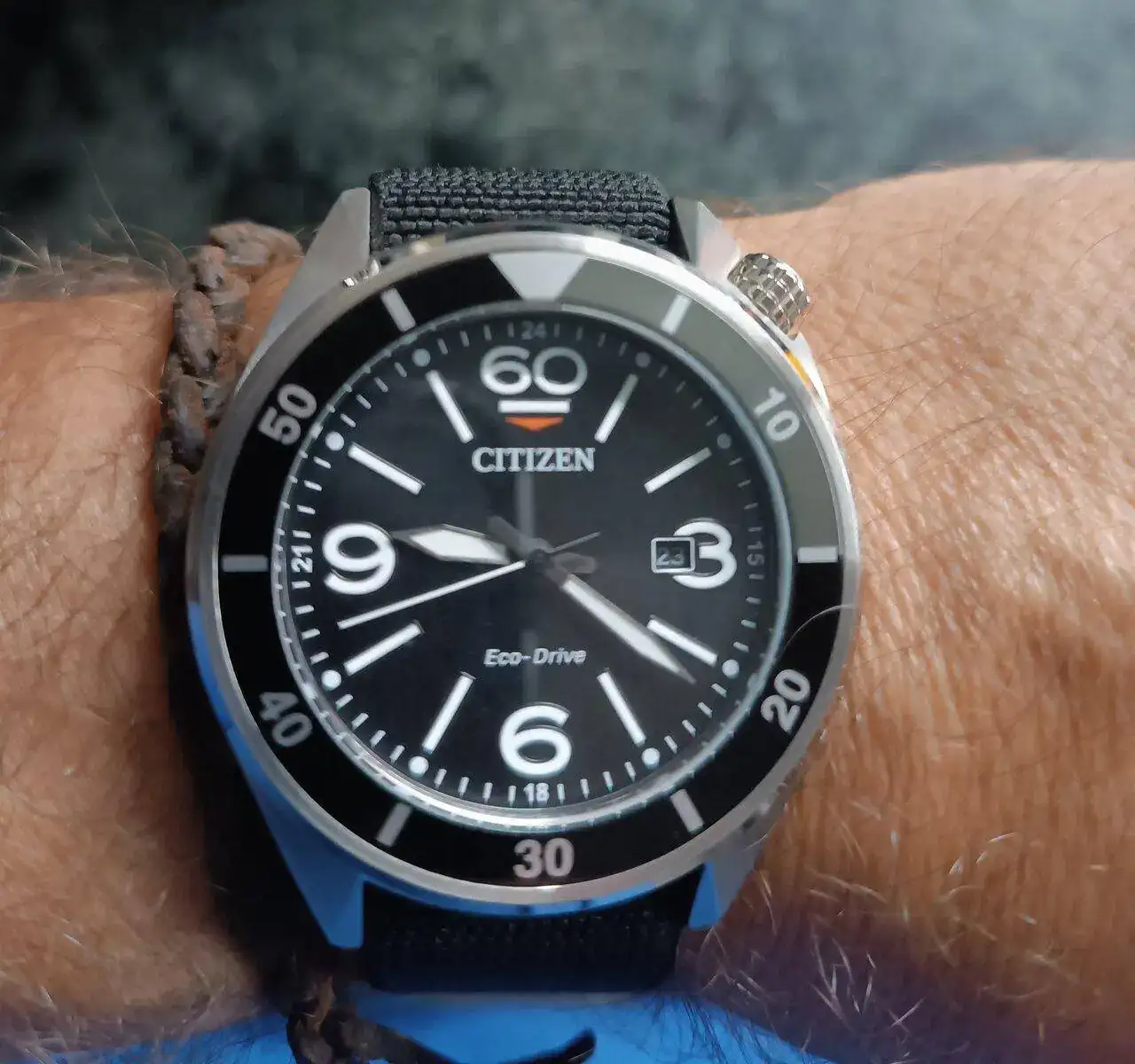 El detalle al que me refiero, y que pasé por alto es el doble color del bisel. Pensaba que era negro por completo, pero me he dado cuenta de que el primer cuarto es gris más claro.