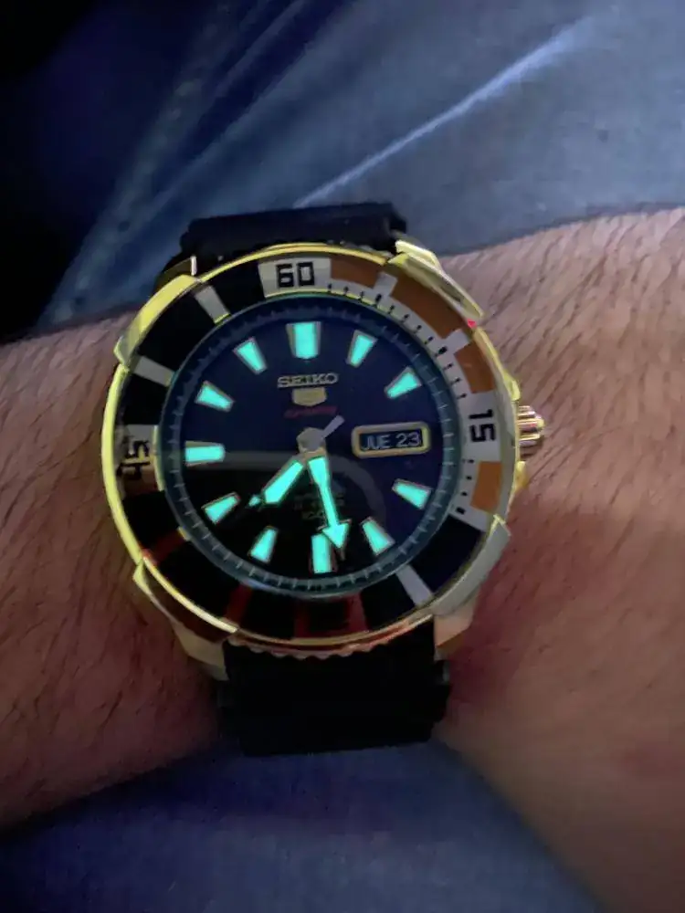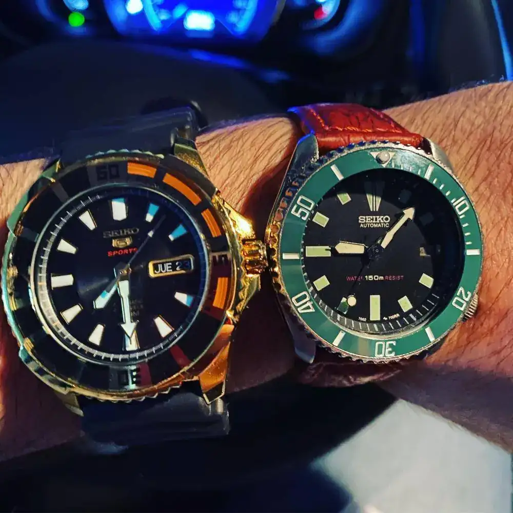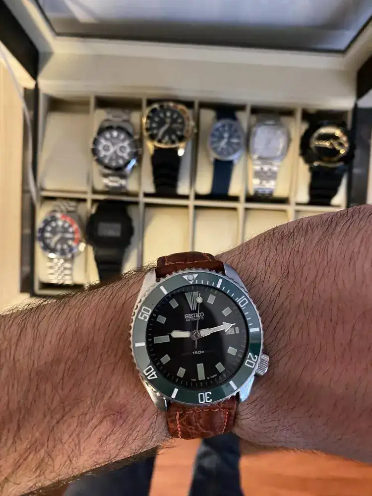 Comparto con vosotros unos cambios de correas que he hecho en mi caja, no suelo hacer cambios, pero el Seiko dorado que compre hace tiempo, me lo pongo muy poco porque es muy llamativo y parece de oro y al no serlo, me daba vergüenza... ahora me lo pondré muchísimo más porque con la correa de caucho de mi 7002 ha quedado perfecto y al 7002, le he comprado una nueva de cuero marrón.