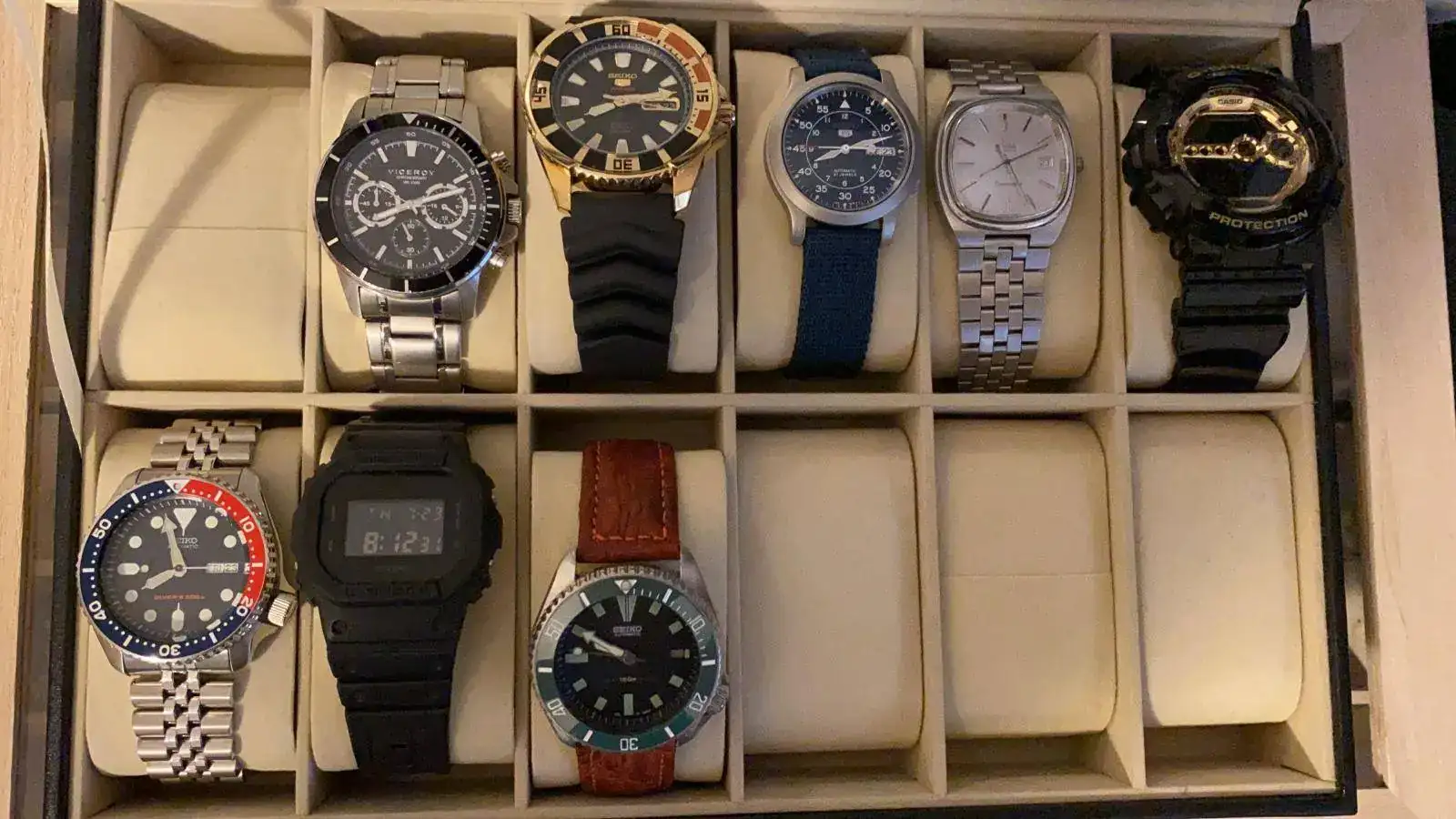 Y os dejo una foto de mi caja al completo a falta de un Radiant Vintage con la caja bañada en oro, que tengo en mi relojero de confianza y que tendré la semana que viene de vuelta.