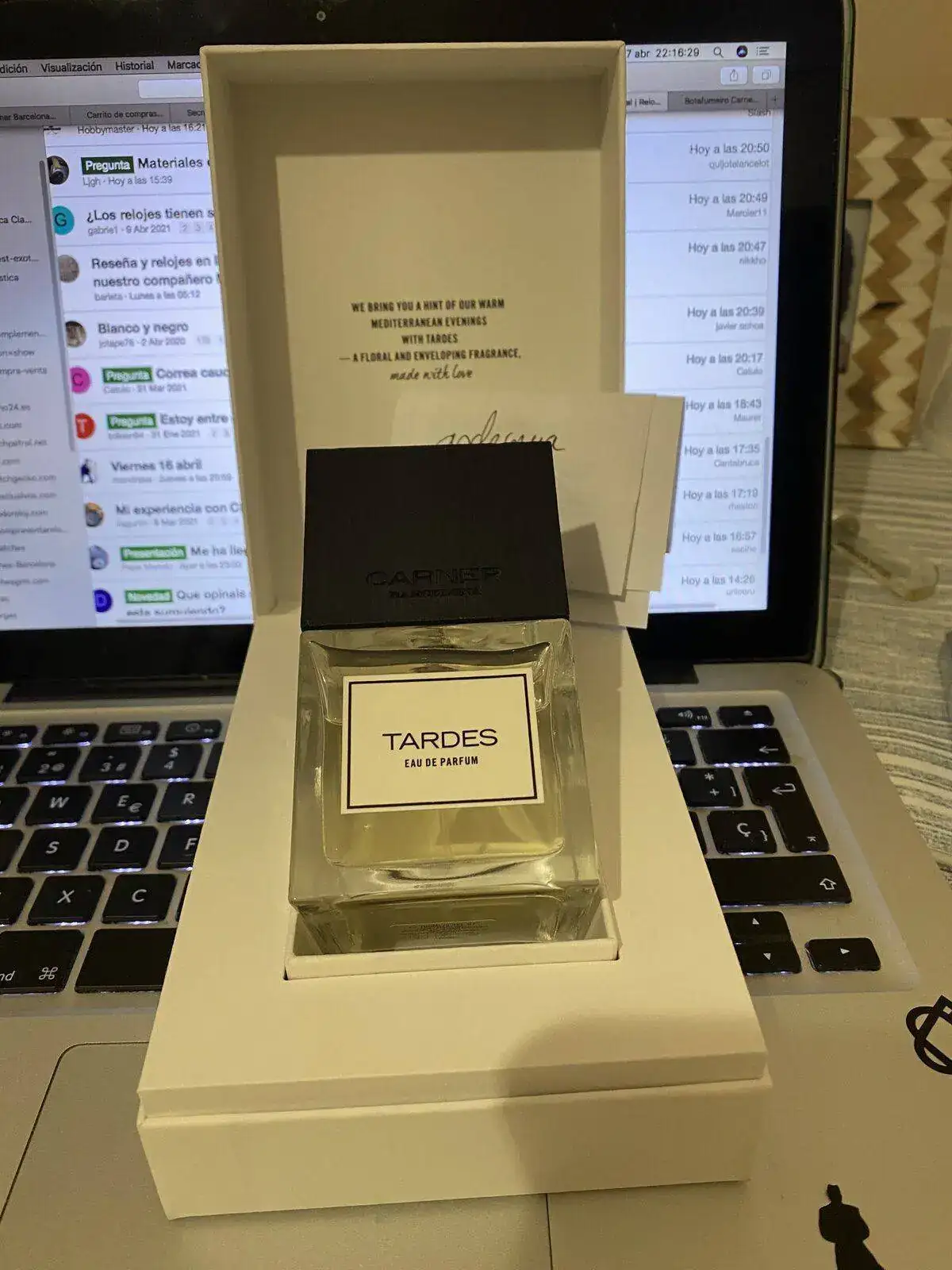 Perfume Tardes de 100 ml de la casa Carner Barcelona