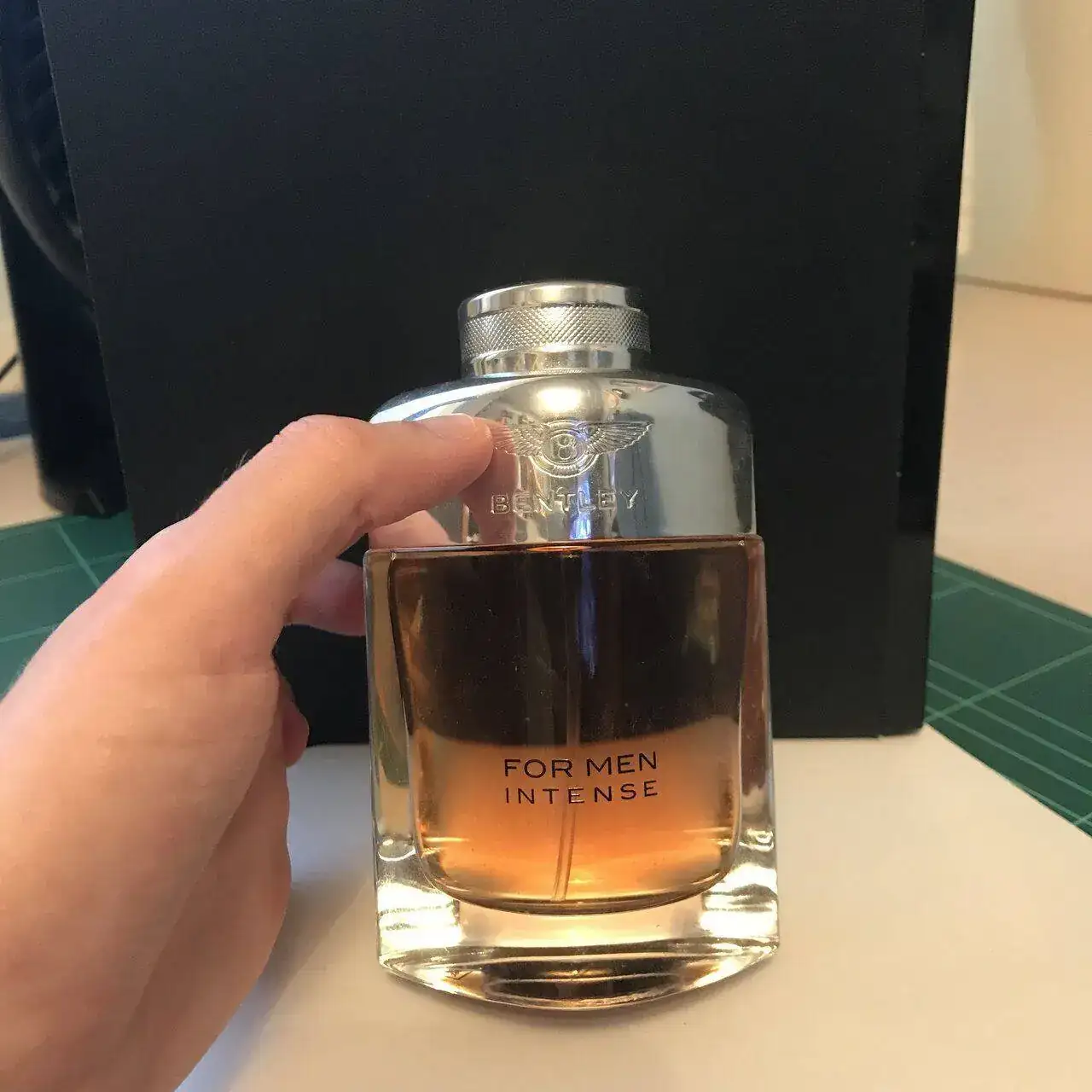 El segundo, Bentley for men Intense, muy conocido por su relación calidad precio. No se decir a que porcentaje está ya que el líquido sobrepasa el tapón así que está casi entero. 15€