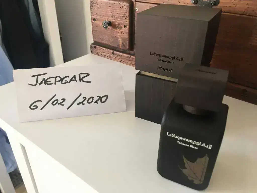 1º RASASI TOBACCO BLAZE: Esta al 99,9% ; lo he recibido esta misma mañana y solo le falta un spray que me ha sido suficiente para darme cuenta que se parece demasiado a Rasasi La Yuqawam y no necesito dos tan similares. Se envía completa con su espectacular caja de madera. PRECIO 51€ con envió por certificado incluido. Adjunto imágenes y quiero destacar para que no haya mal entendidos que las botellas de Rasassi no vienen nunca a rebosar hasta el tapón son 75 ml.