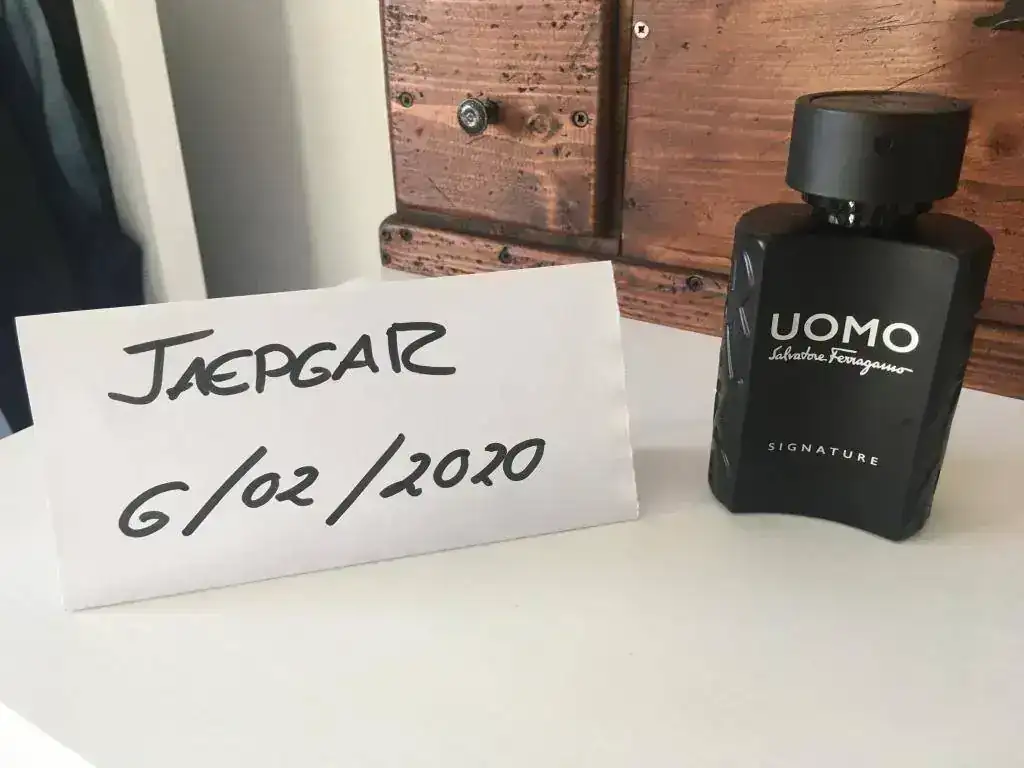 6º SALVATORE FERRAGAMO UOMO SIGNATURE 50 ml: Solo utilizada una vez esta al 98%. Fragancia potente, en mi piel con dos sprays suficiente para todo el día. PRECIO 26€ por certificado
