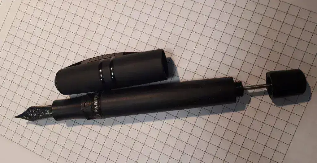 Hoy he pasado por otro CI y como tenía tiempo, he entrado a echar un vistazo, y veo un cartel con el 50% en Visconti,pero sin indicar en qué modelos. Pregunto a una chica muy amable pero que lleva una semana trabajando allí, y me dice que tiene que pasar las plumas por la caja para ver el descuento de cada una. Le señalo dos oversize (que no tienen precio) y las pasa por caja, y aquí viene la sorpresa, una de ellas se queda en un precio de escándalo, yo creo que más del 50% de su tarifa. Le digo que lo compruebe, porque si ese es el precio me la llevo ipso facto, y después de consultar con dos personas más, me confirman el precio, que el descuento es del 50% y que es el último modelo. Y aquí la tenéis: