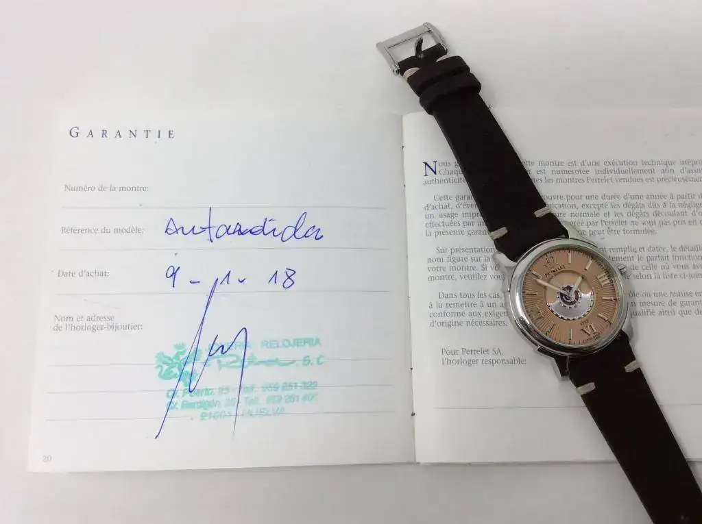 Todos nuestros artículos han pasado el control de policía,según la legislación vigente,para asegurar la buena procedencia de los mismos.Hacemos factura con el número de serie. Damos un año de garantía de funcionamiento en todos nuestros relojes.