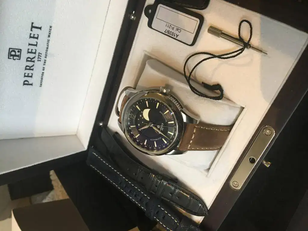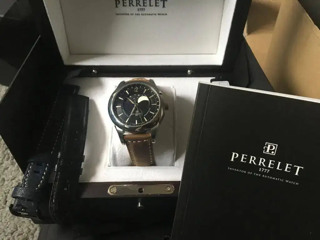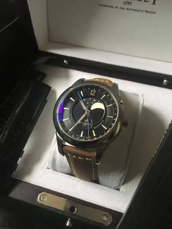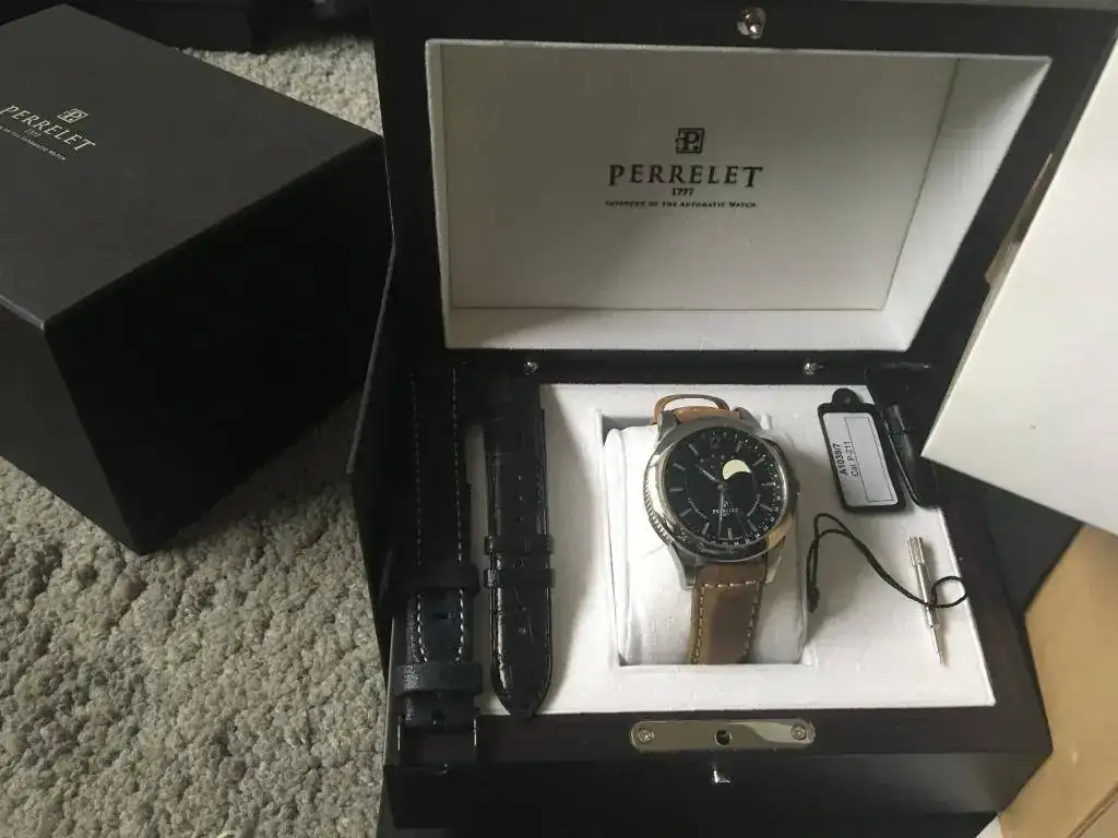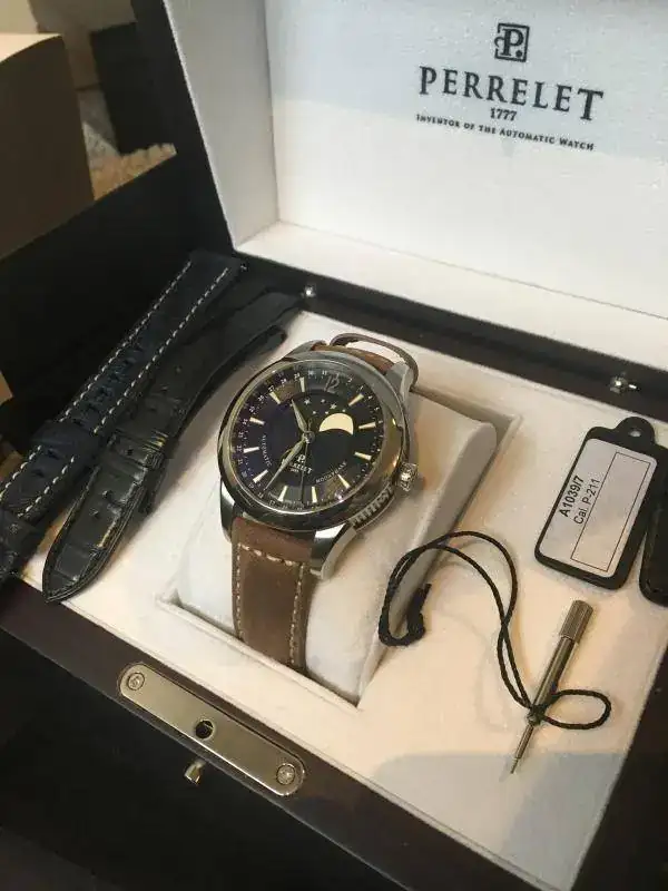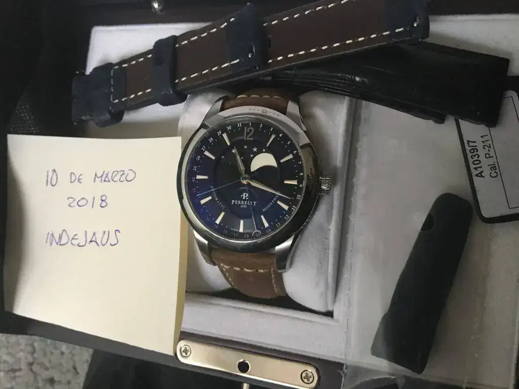 Pongo a la venta este magnífico reloj perrelet moonphase esfera negra que fue el segundo que se compró en casa, era para un regalo para mi padre, pero al final no se lo ponía y se quedó en la caja. Tenía yo uno y mi padre quería uno similar, al final no le gustó y me lo quedé yo ( esa es la suerte de compartir afición) cuando se vendió el anterior, así que ese es el motivo de tener dos relojes iguales 😀 y ahora le toca salir a este.