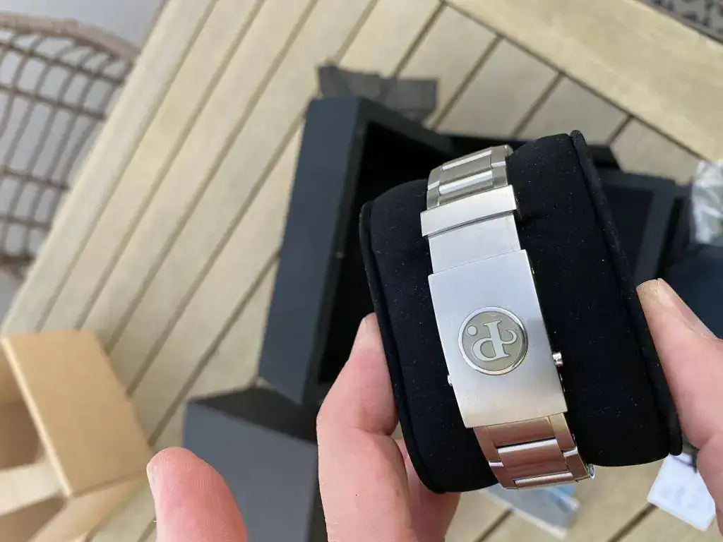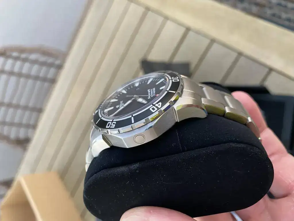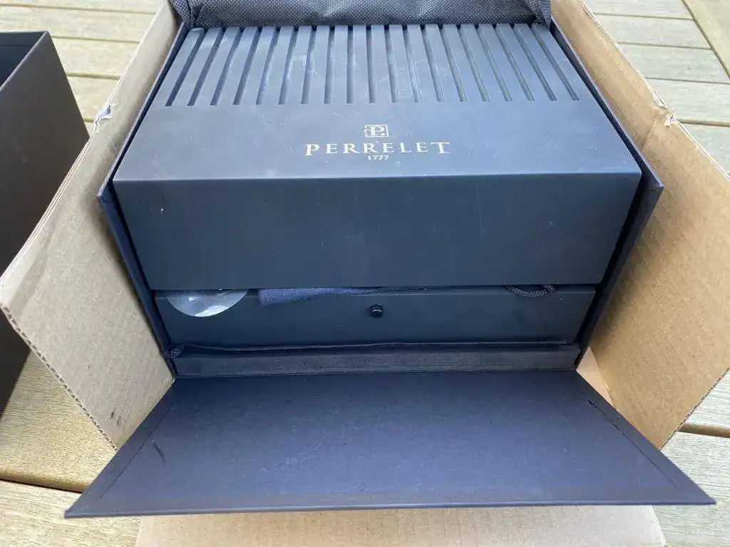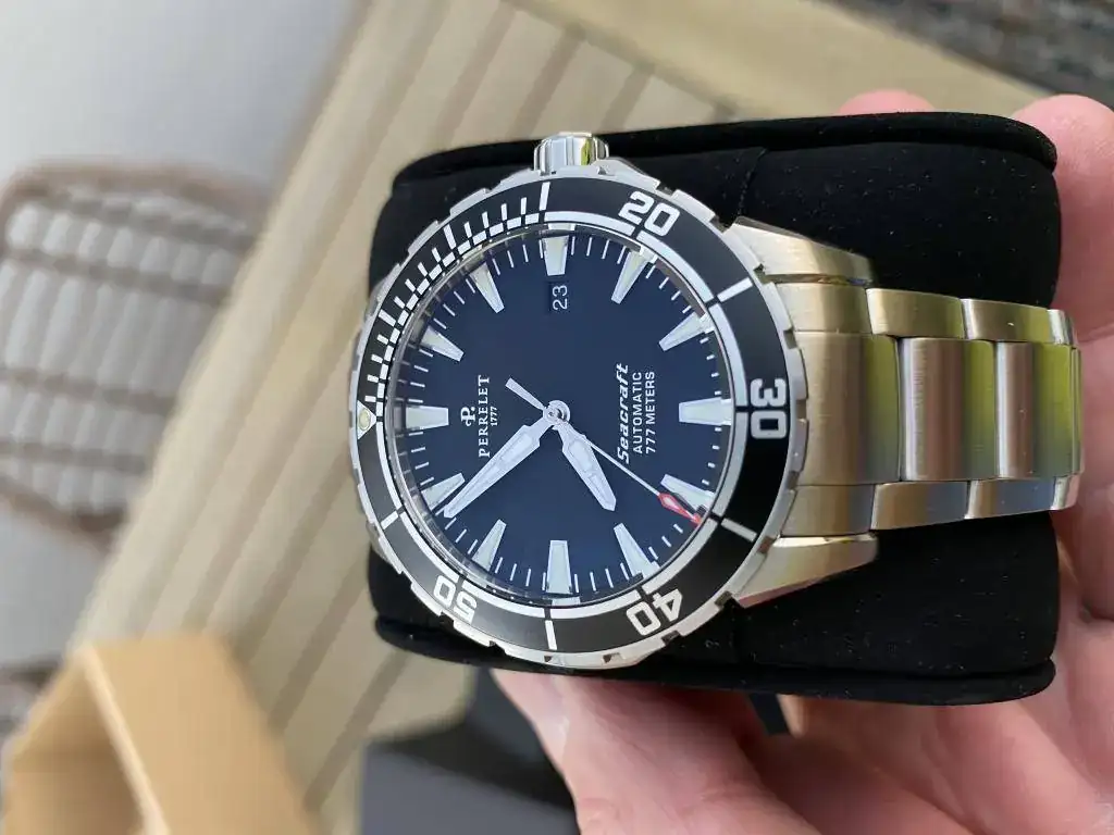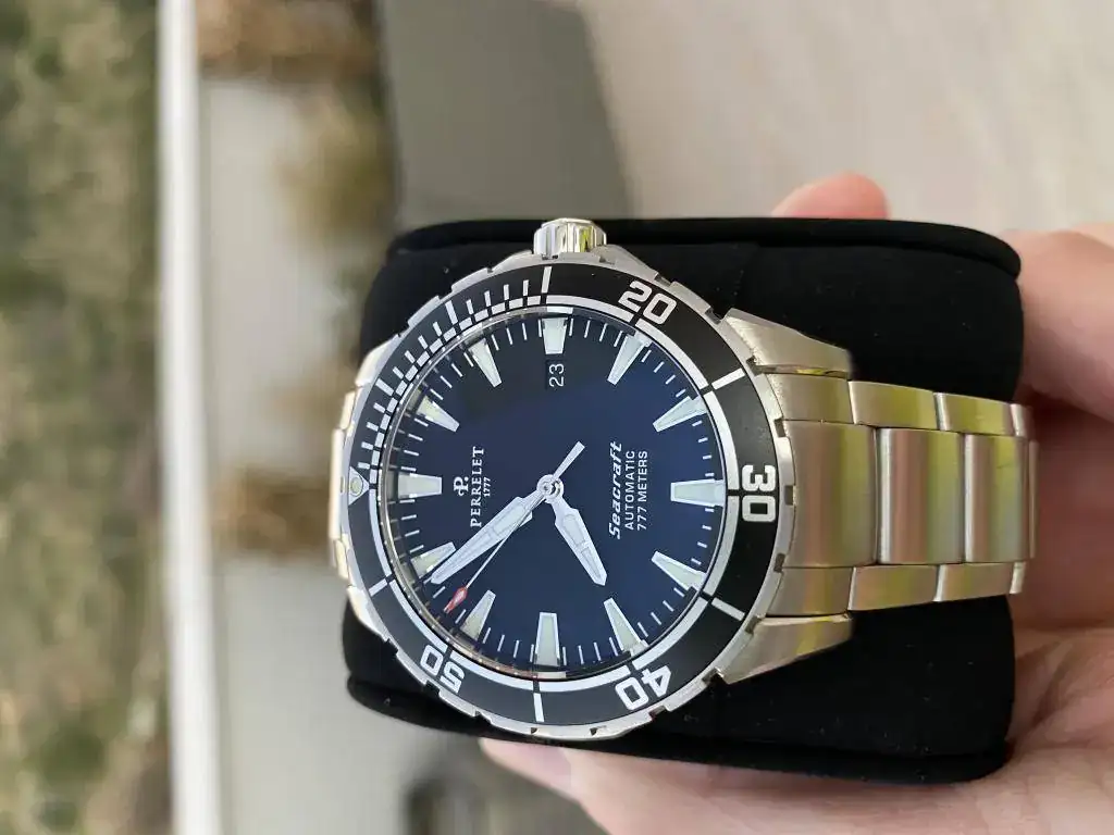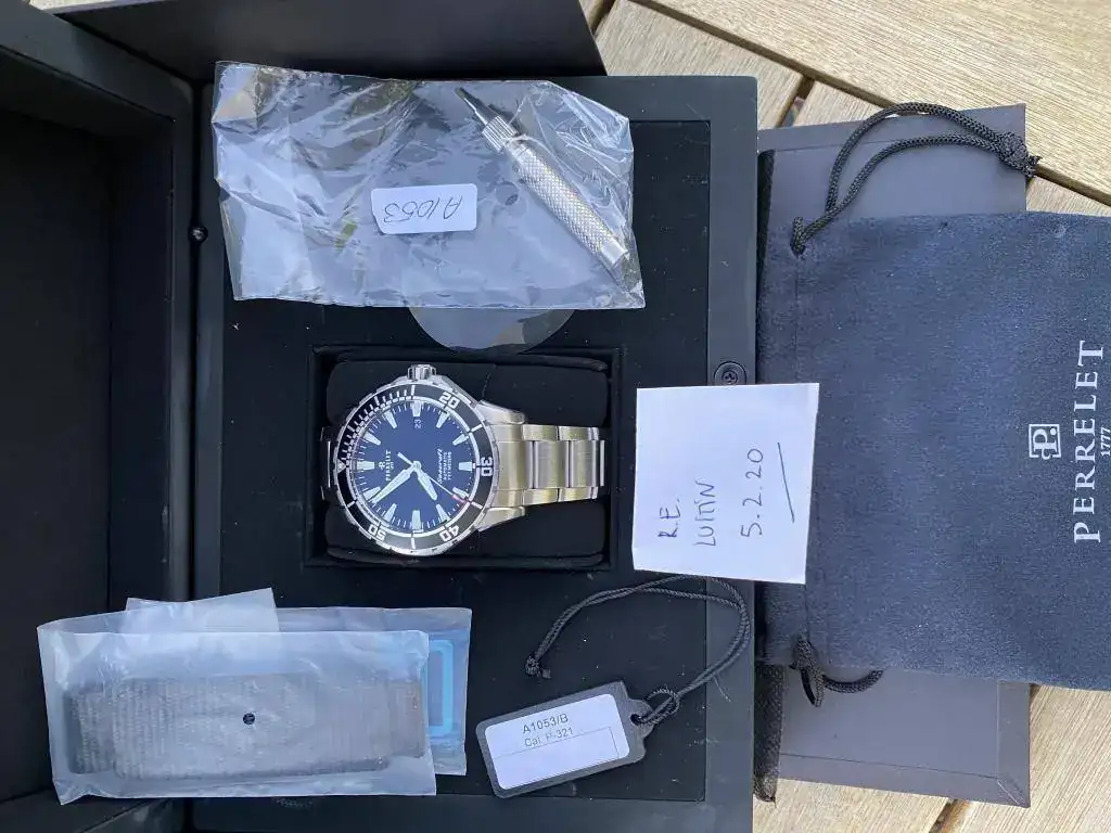 Saco a la venta este Perrelet Seacraft Automatico Como Nuevo. El estado es de reestreno, me lo he puesto dos veces: en una boda y un 50 aniversario. No tiene nada ni siquiera los pelillos del cierre. Automatico, full set cajas y papeles, correa nato extra, bolsa, destornillador etc