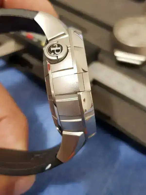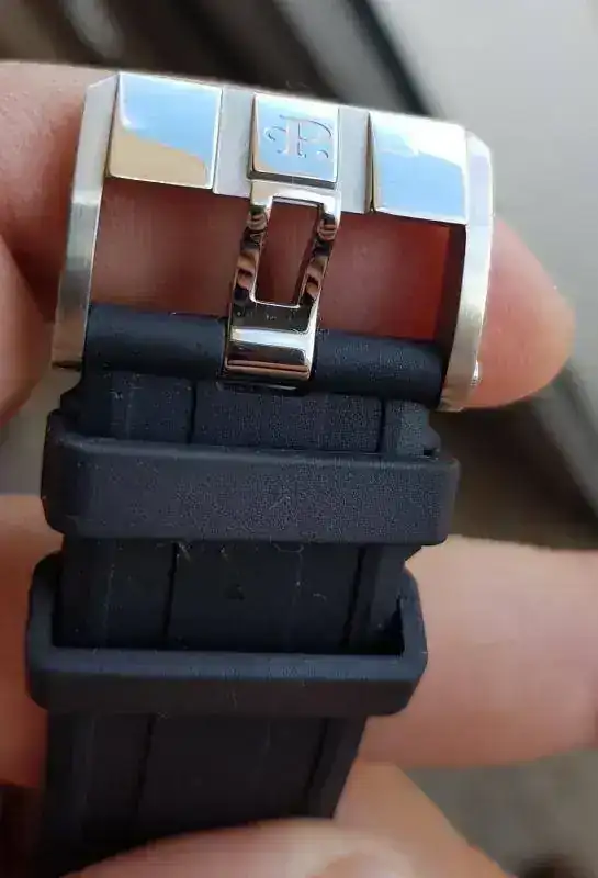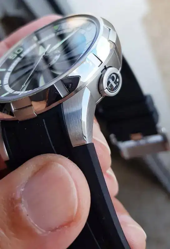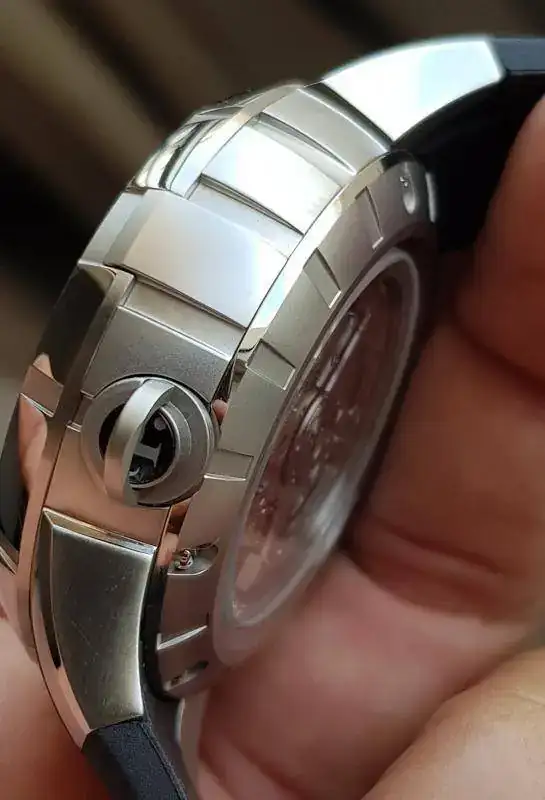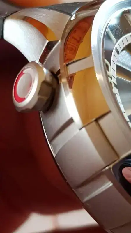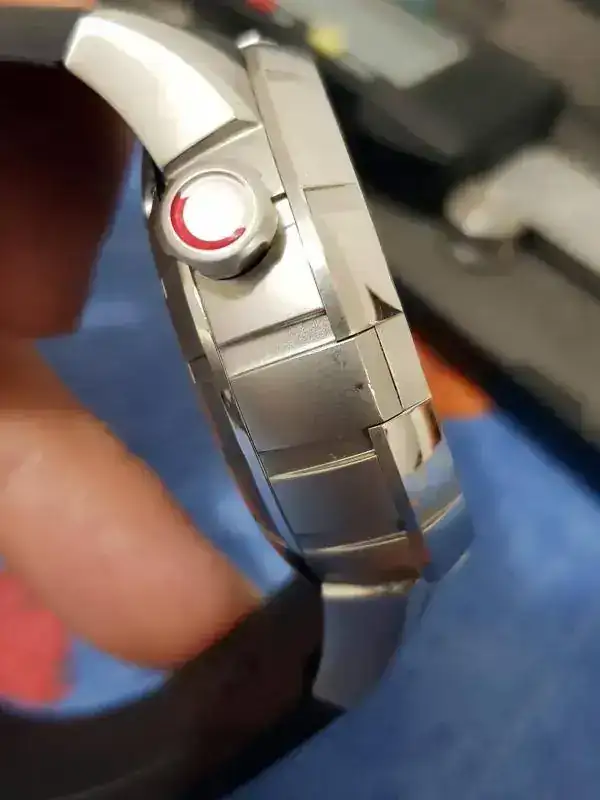 ESTADO: En general es muy bueno, con ligeros pelillos en alguno de los pulidos a espejo y mínimas marcas de uso en alguna parte de las aristas del bisel (parte superior del reloj). La más significativa es la que se puede ver a la altura de las 11:30. También acabo de ver en una de las fotos que tiene un pelillo en el antireflejos, cosa que no había visto y que solo mirando muy específicamente a contraluz se ve... pero está ahí y si está hay que ponerlo.