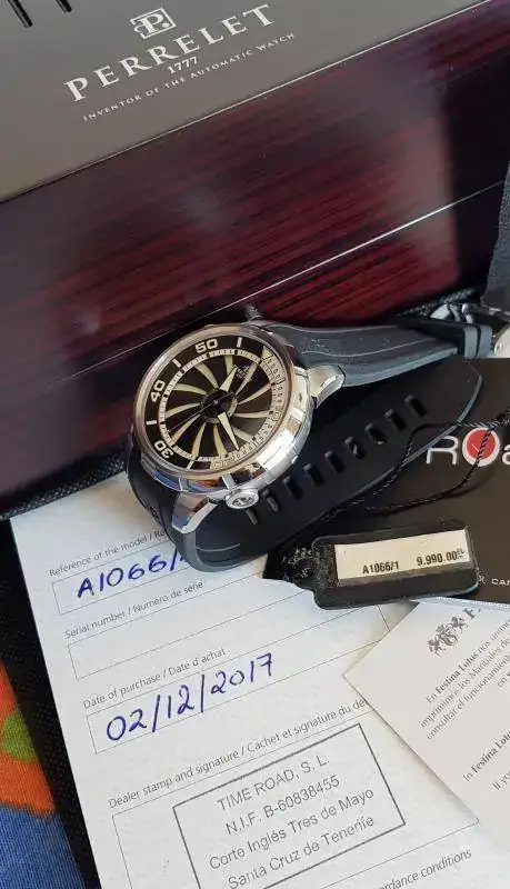 Para cambio lo valoraría según valores el tuyo. Ten en cuenta el P.V.P. de este reloj (9.900 €) que podéis ver en su etiqueta de la ultima foto.