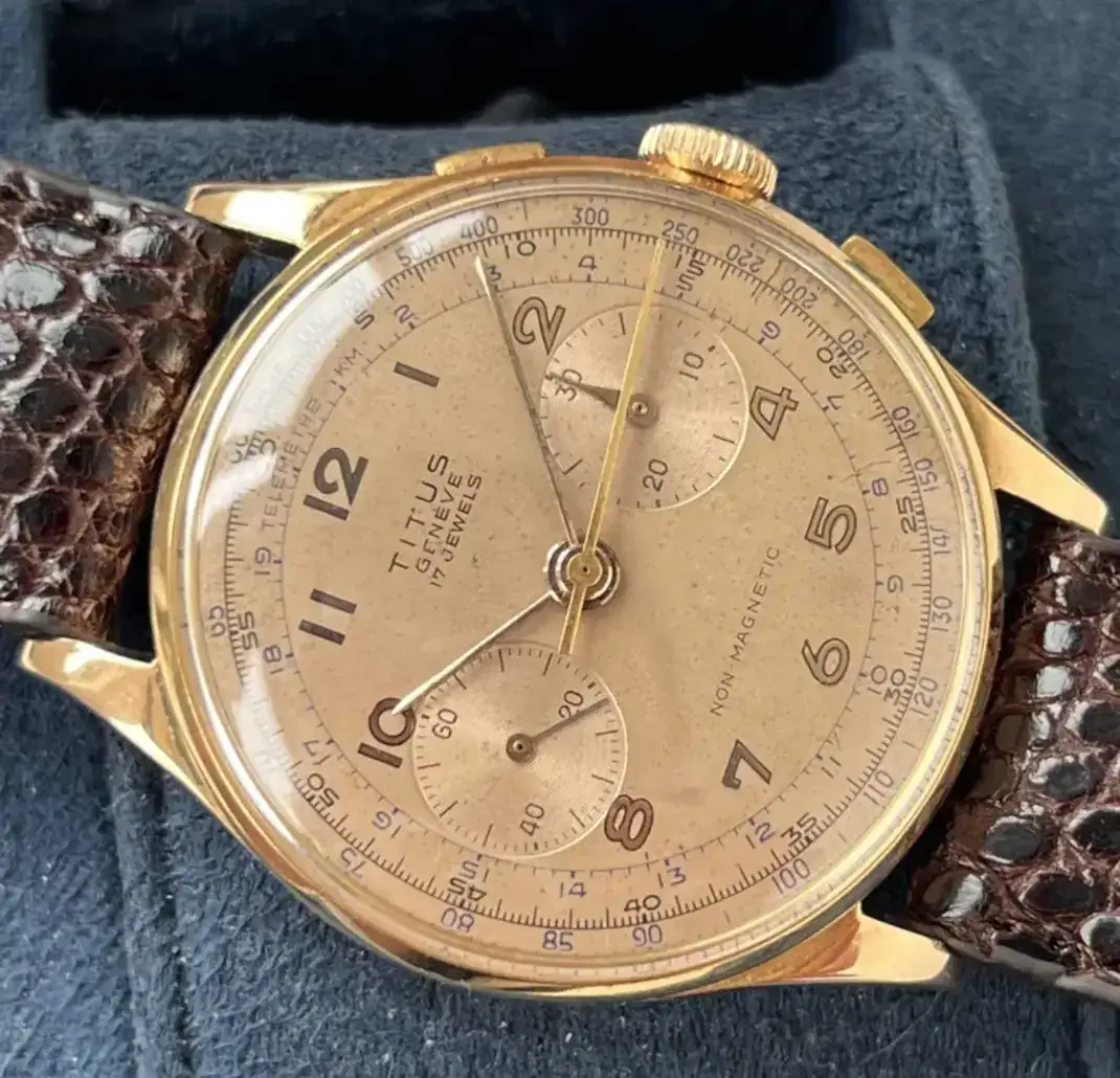 Me gusta un reloj que he visto en venta, no en este foro, un cronógrafo Titus de caja de 35mm del que el vendedor dice que tiene unos 15 g de oro pero por otro lado he leído que Omegas como el mío tienen unos 5 g y la diferencia me parece exagerada...