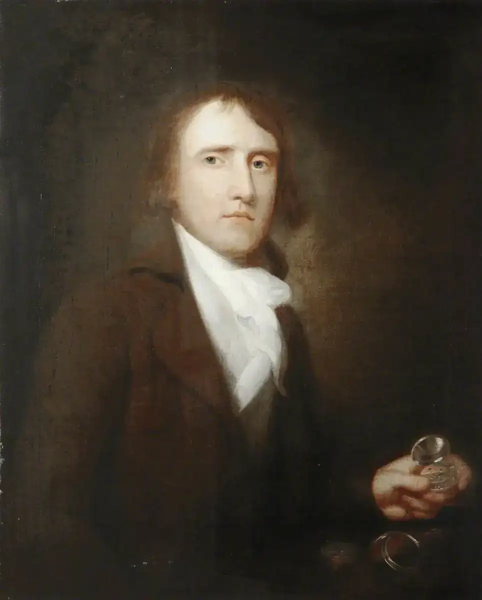 Retrato de Peter Litherland, sosteniendo un reloj equipado con su patente. https://artuk.org/discover/artworks/peter-litherland-17561804-97364