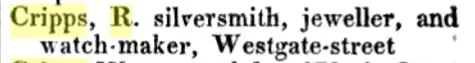 Como ya he advertido en multitud de ocasiones intentar saber si la firma que lleva el reloj es del relojero que lo finalizó o del joyero que lo vendió, es una tarea ardua y complicada. Buscando en los directorios de la época de la ciudad de Bath, pude encontrar una entrada que lo identifica como relojero y joyero, así que es posible que Cripps finalizase este reloj y no solo se encargase de venderlo.