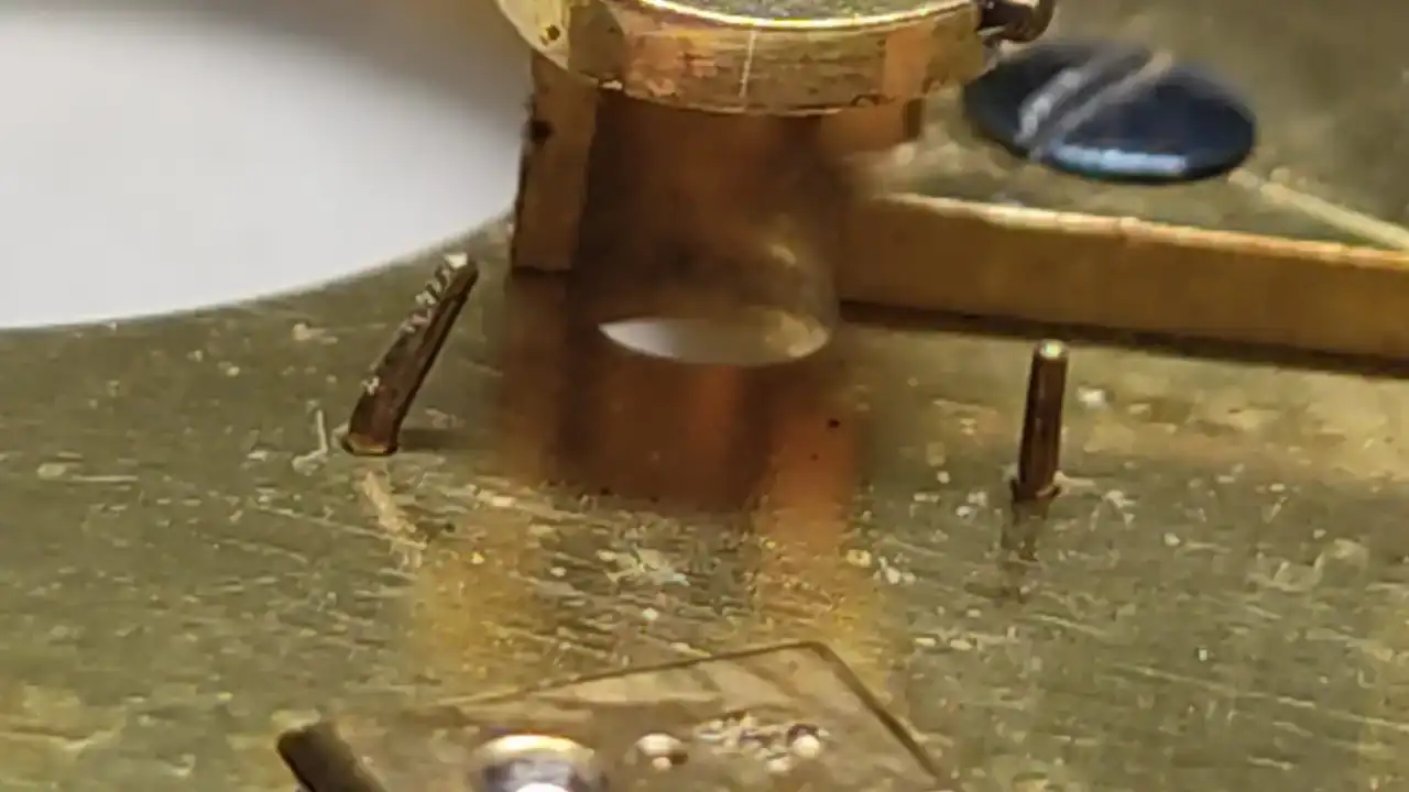 Básicamente, el escape de áncora de cremallera consiste en un áncora lateral dentada que engrana con un piñón situado en el eje del volante.